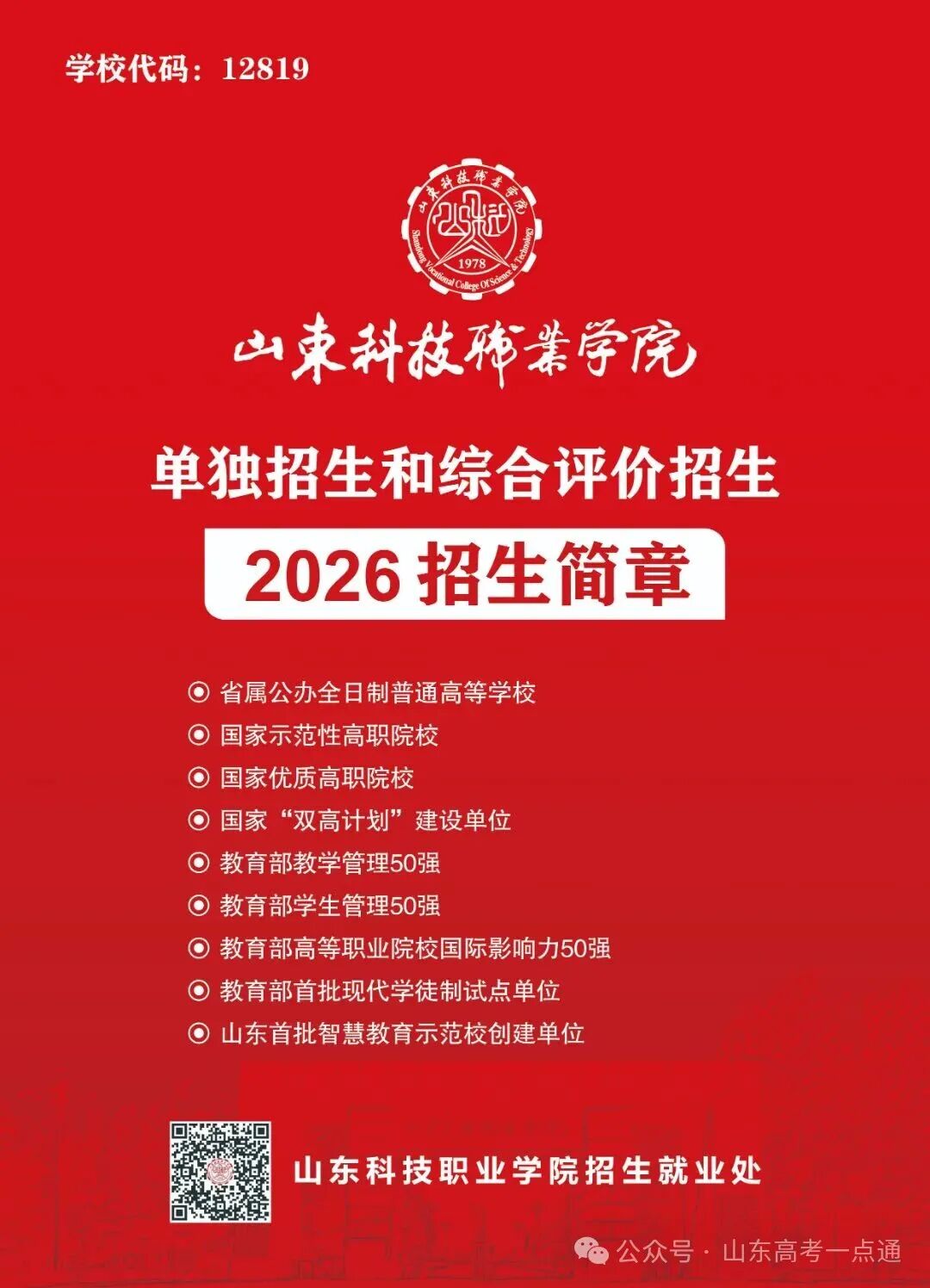 山东科技职业学院2026年高职(专科)单独考试招生和综合评价招生章程 2026-02-12 -