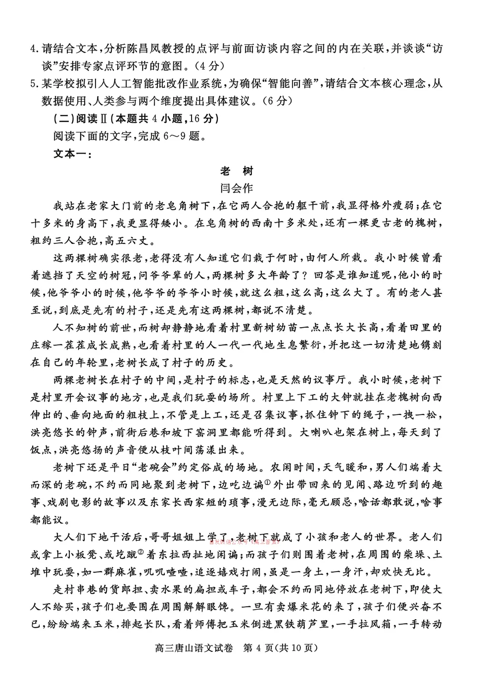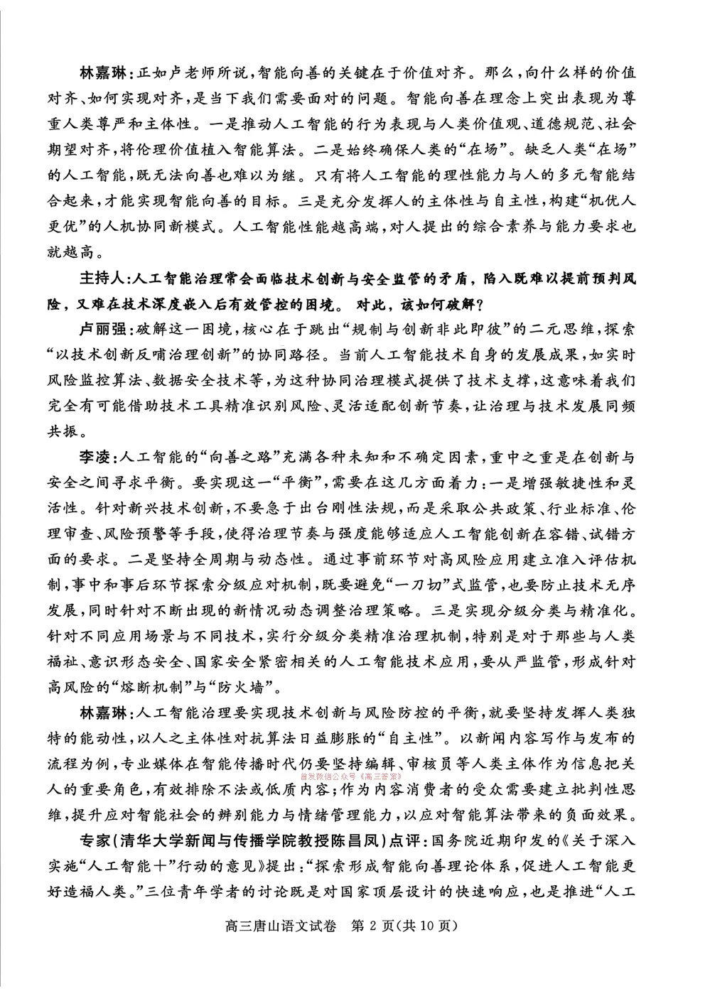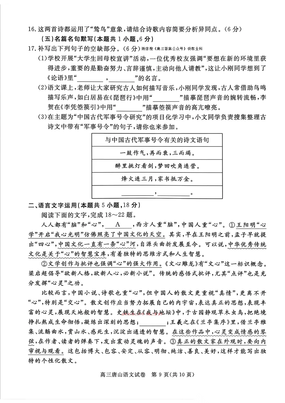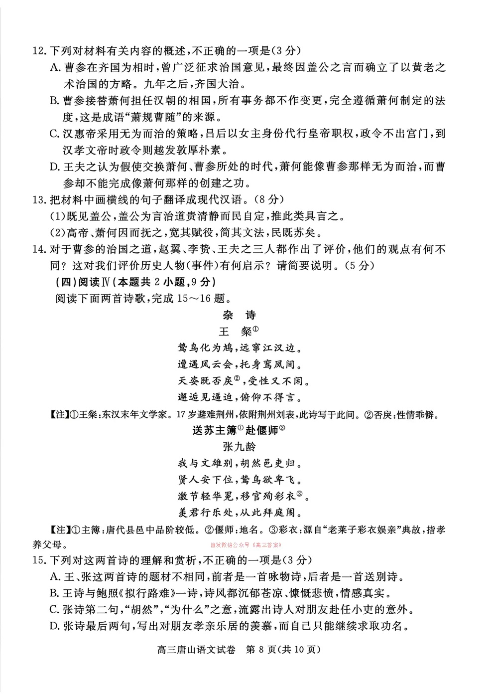 【唐山一模】唐山市2026年高三第一次模拟演练答案