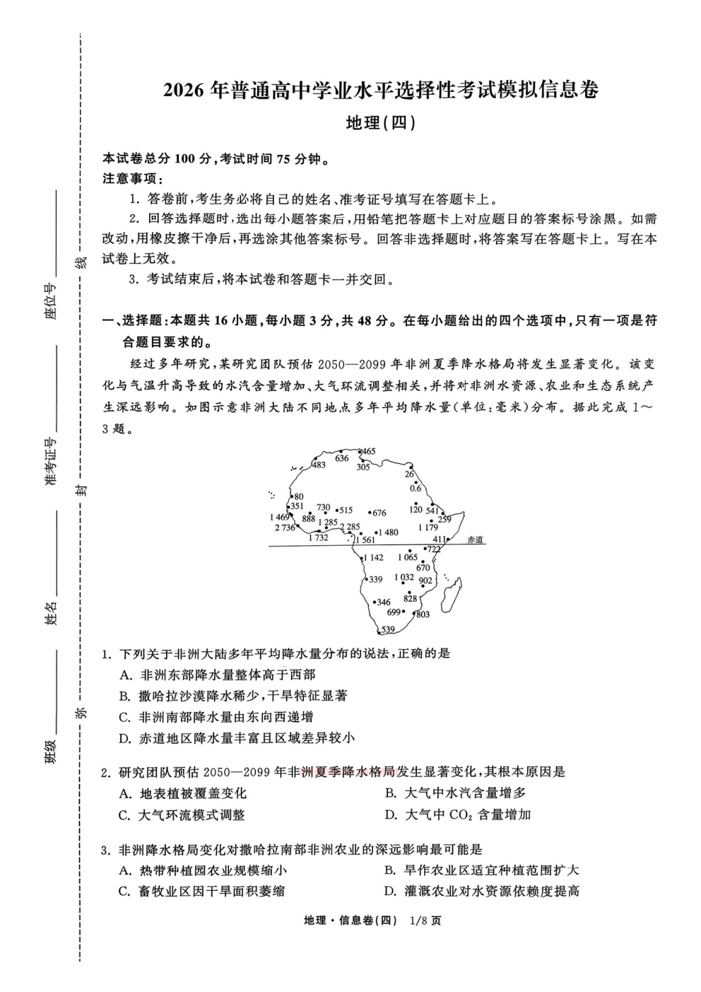2026年普通高中学业水平选择性考试模拟信息卷四