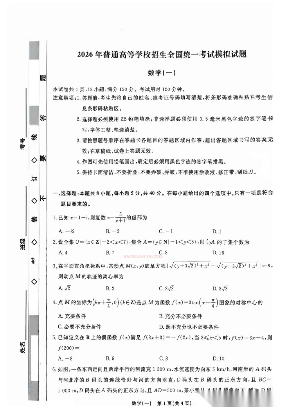 2026高考模拟调研卷一