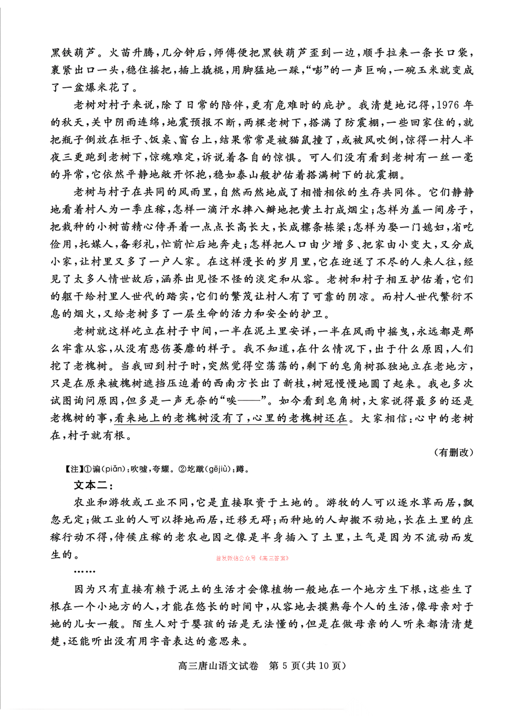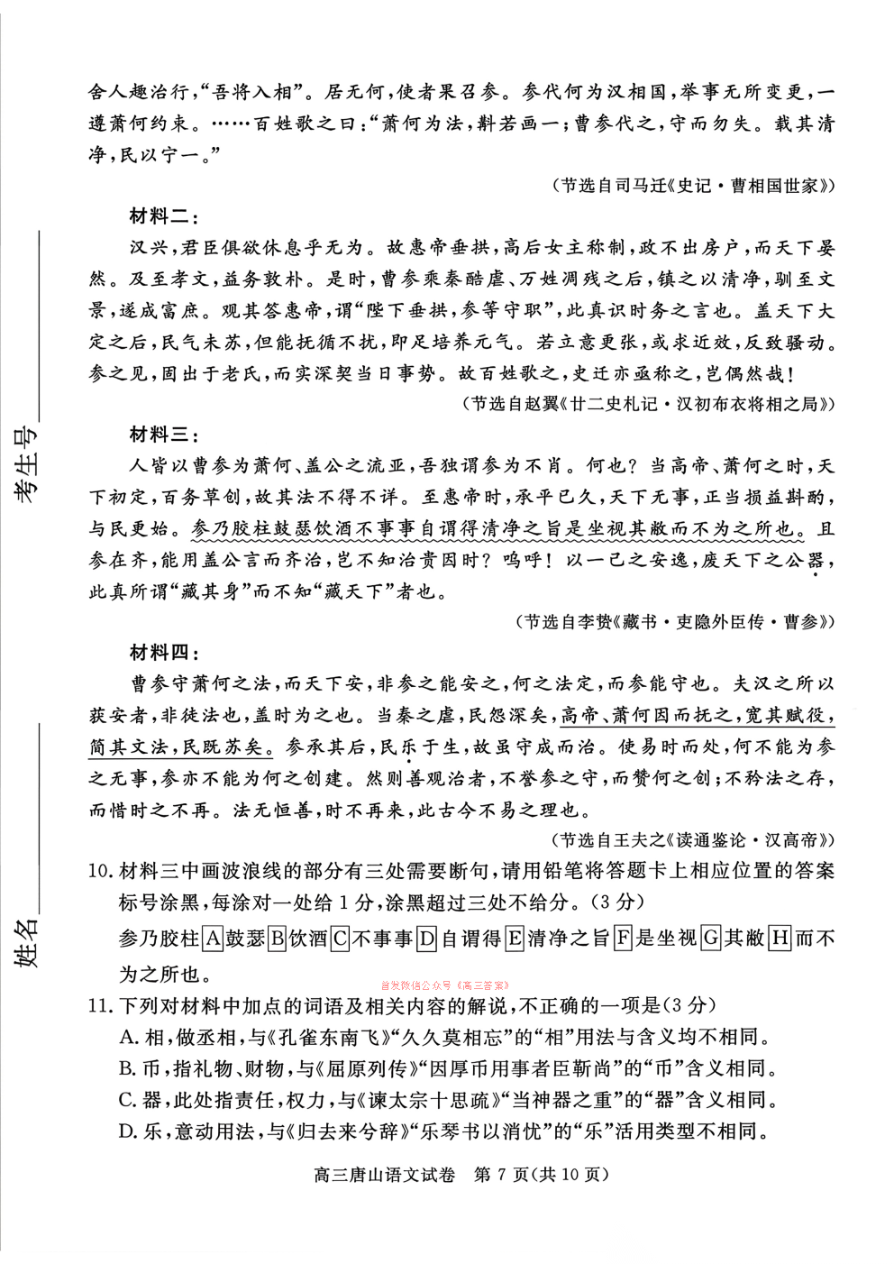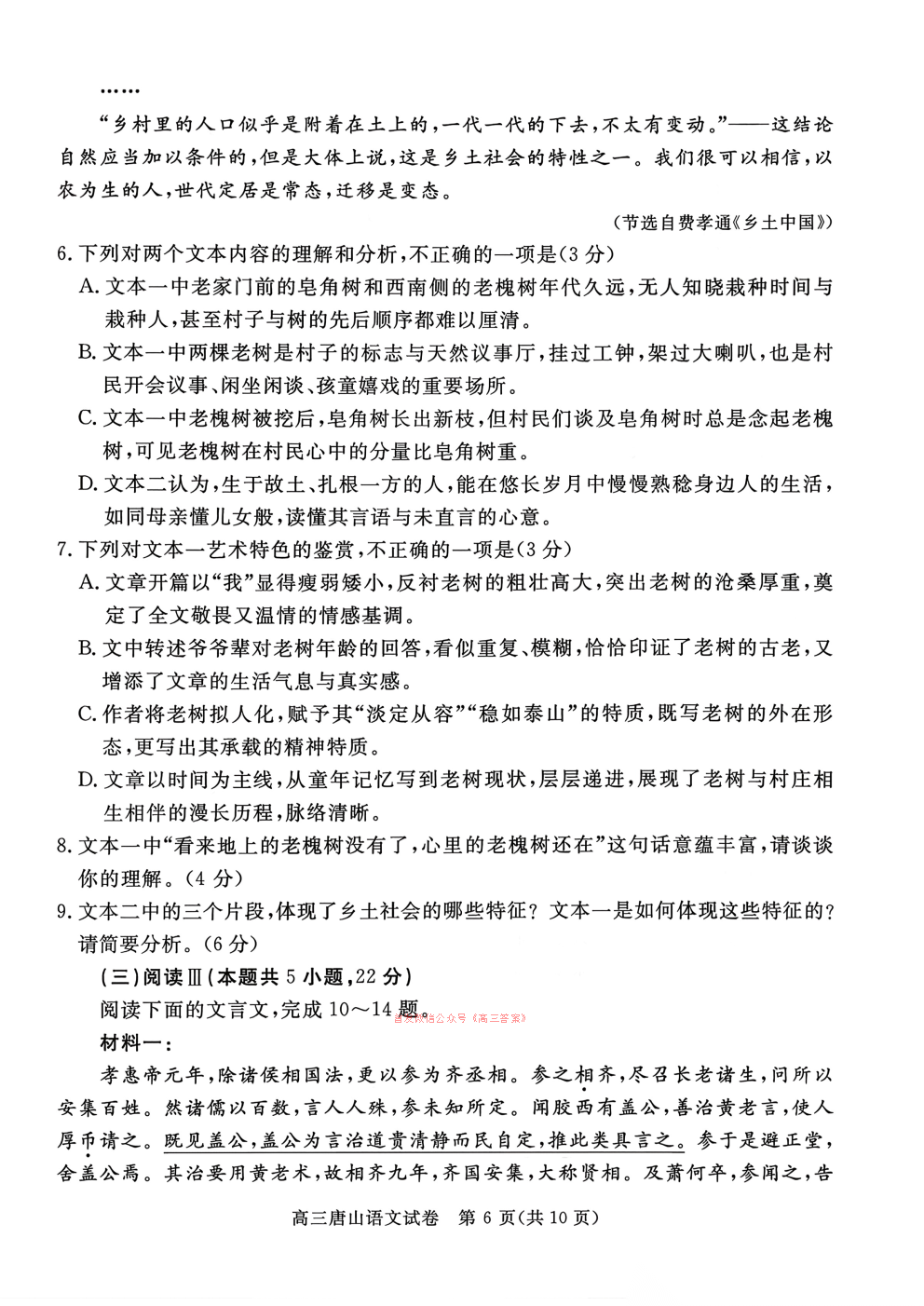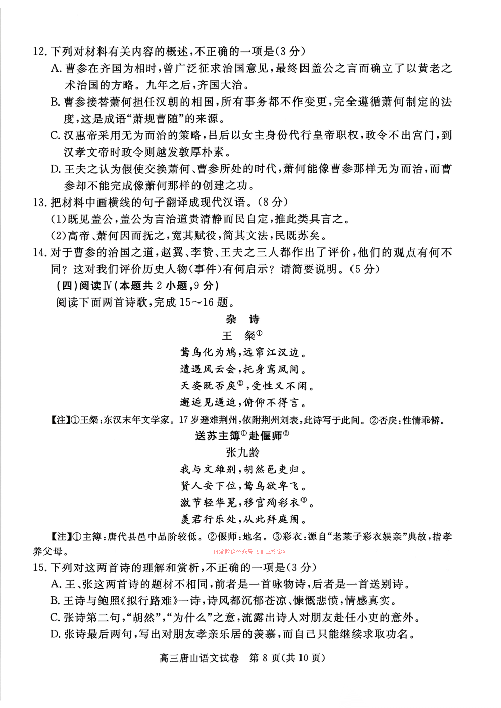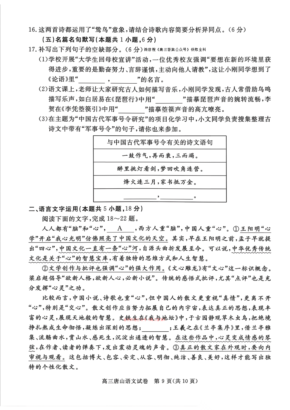 【唐山一模】唐山市2026年高三第一次模拟演练答案 【唐山一模】唐山市2026年高三第一次模拟演练答案
