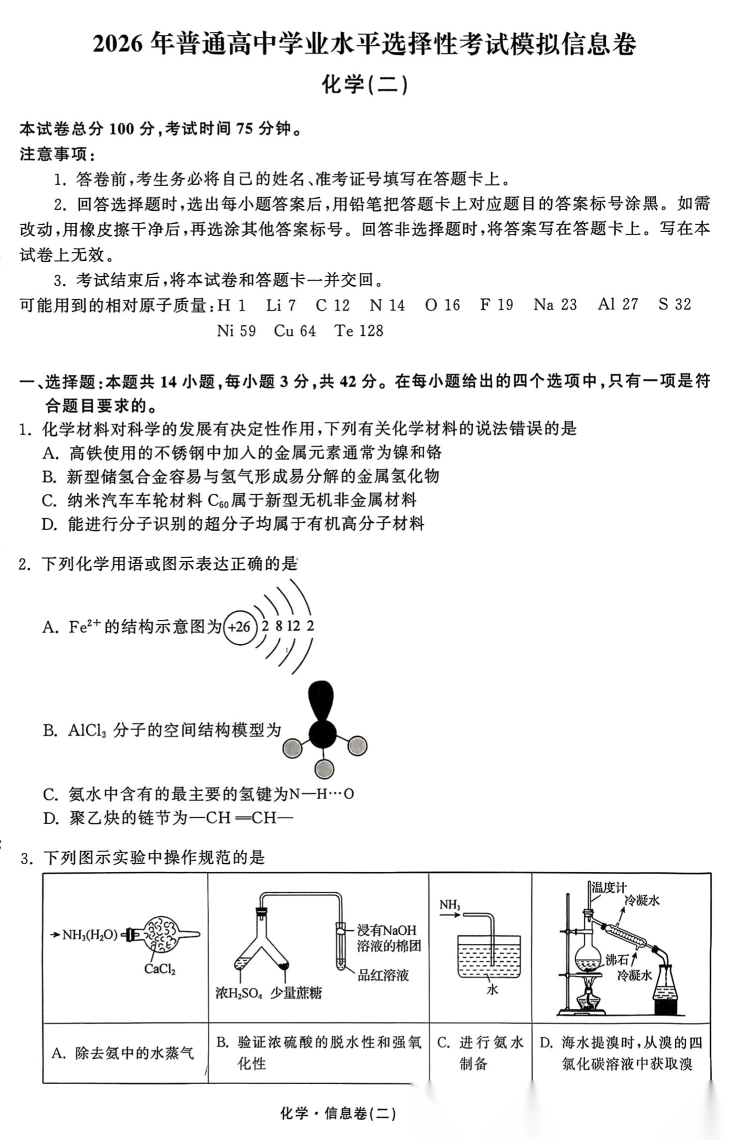 2026年普通高中学业水平选择性考试模拟信息卷二