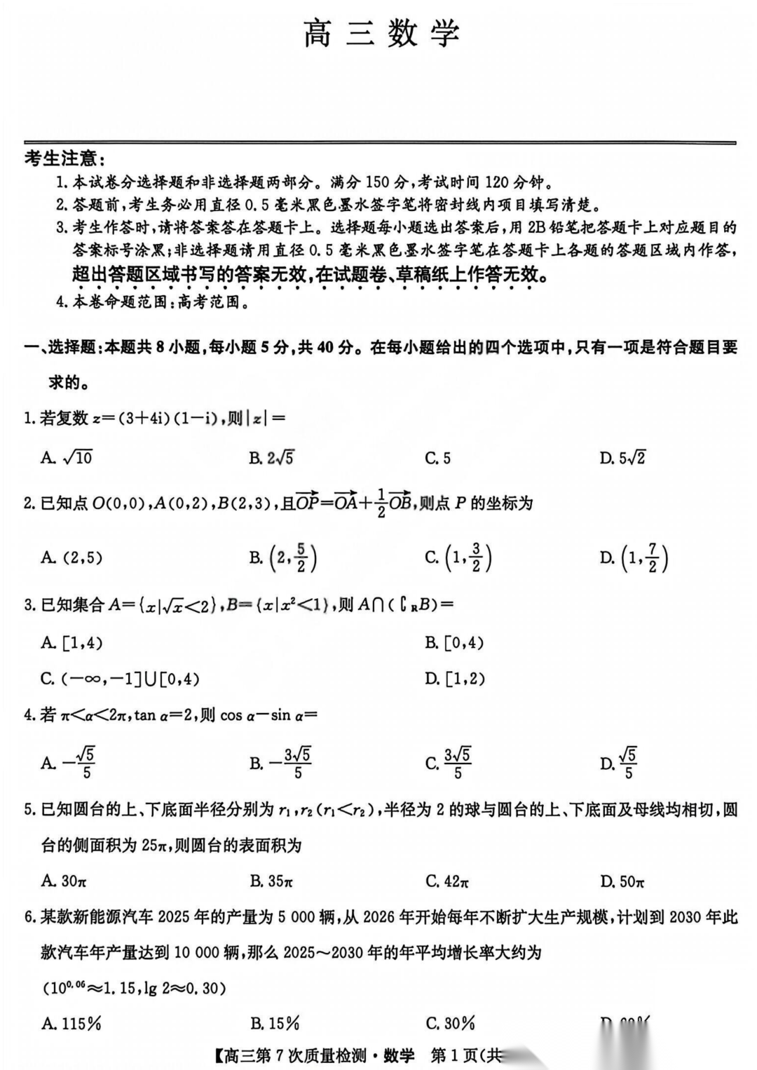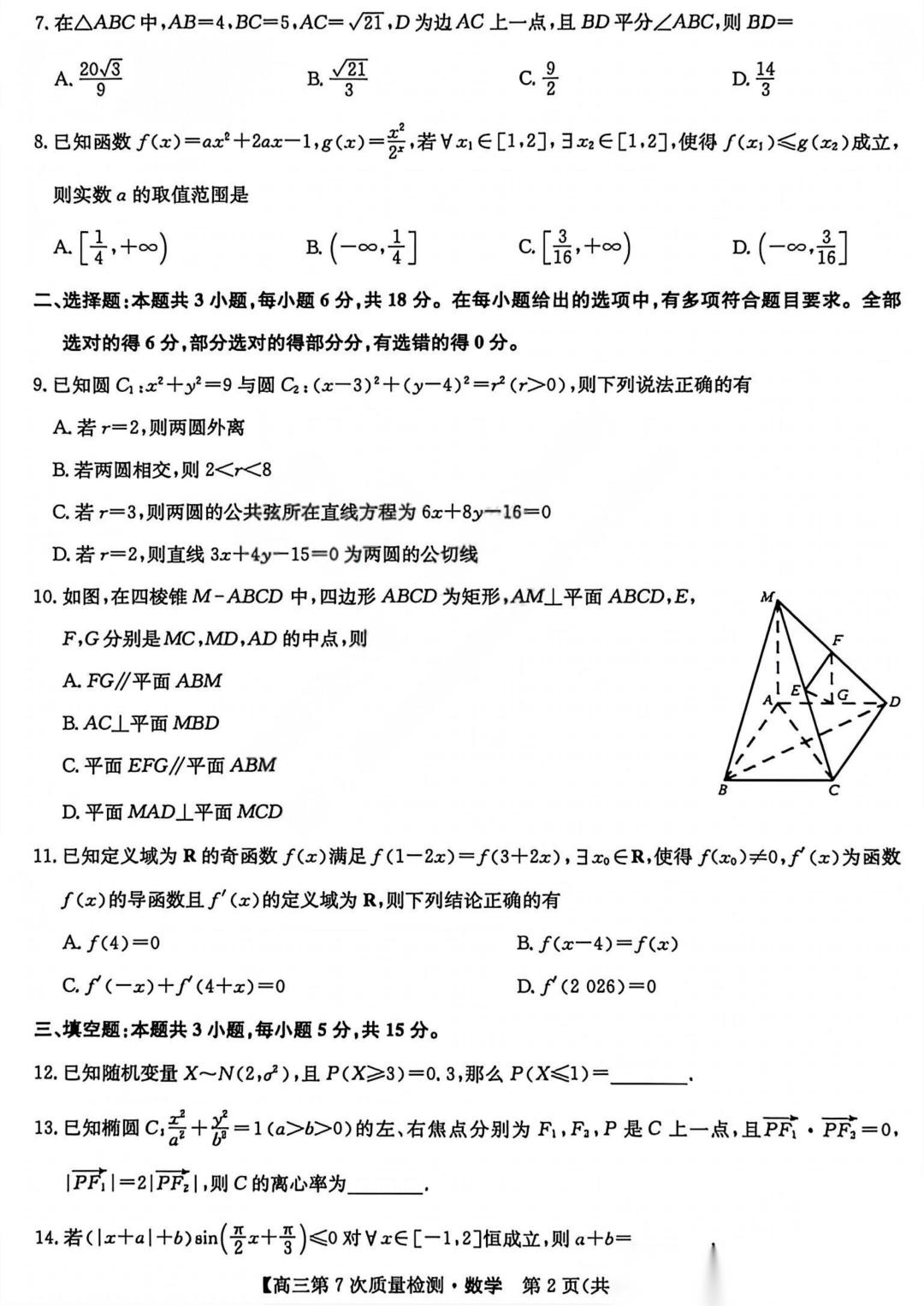 九师联盟2026届高三3月第7次教学质量检测巩固卷