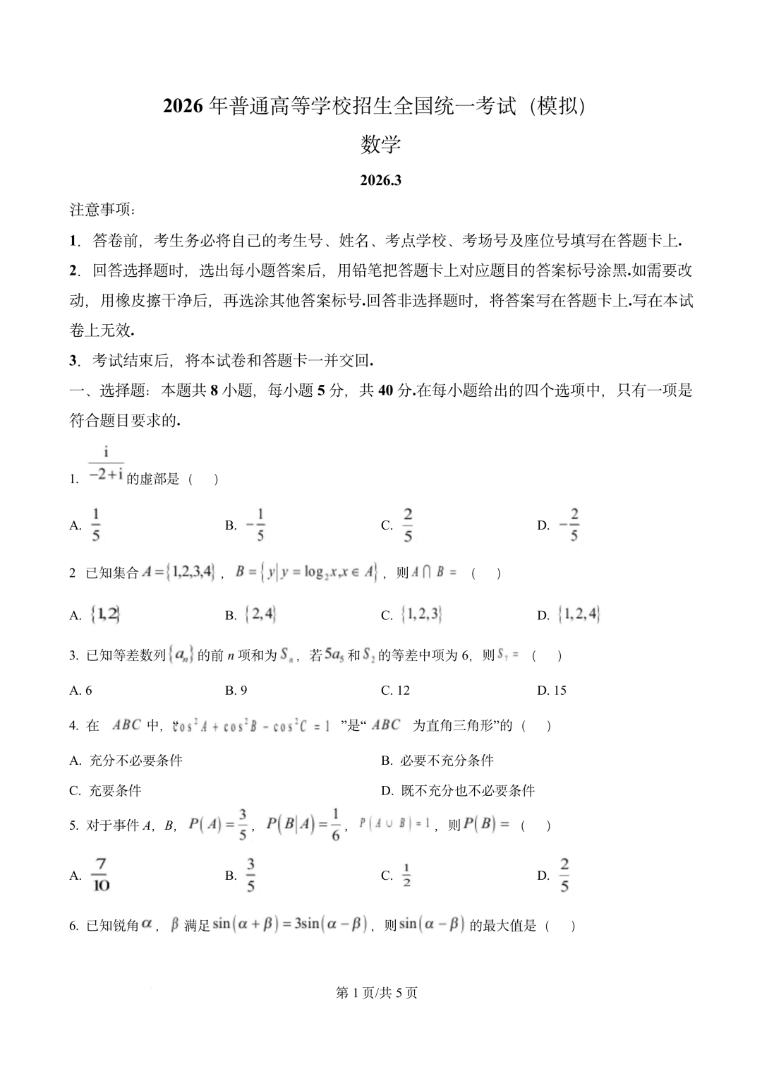 山东菏泽市2026届高三下学期3月一模考试 山东菏泽市2026届高三下学期3月一模考试
