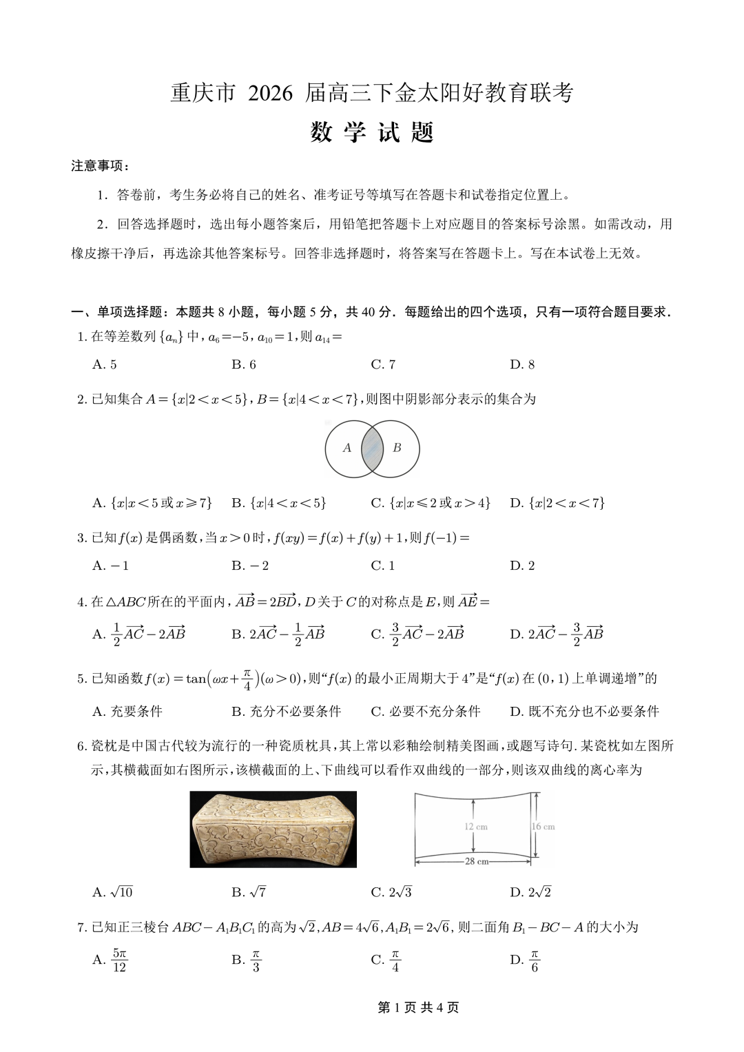 重庆好教育联盟2026届高三下学期3月开学联考(金太阳26-284C)