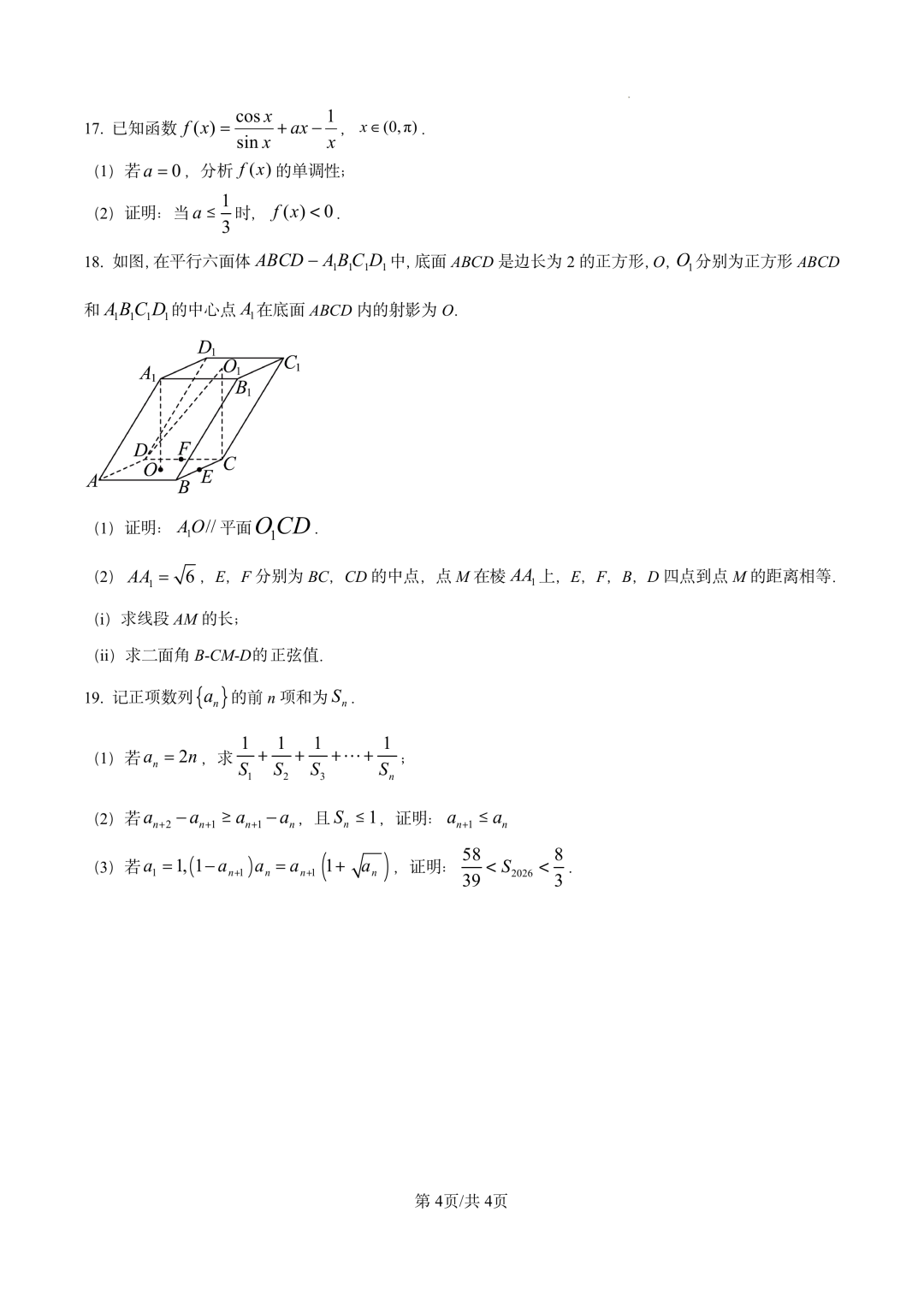 湖北武汉市第四中学2026届高三下学期2月月考 湖北武汉市第四中学2026届高三下学期2月月考