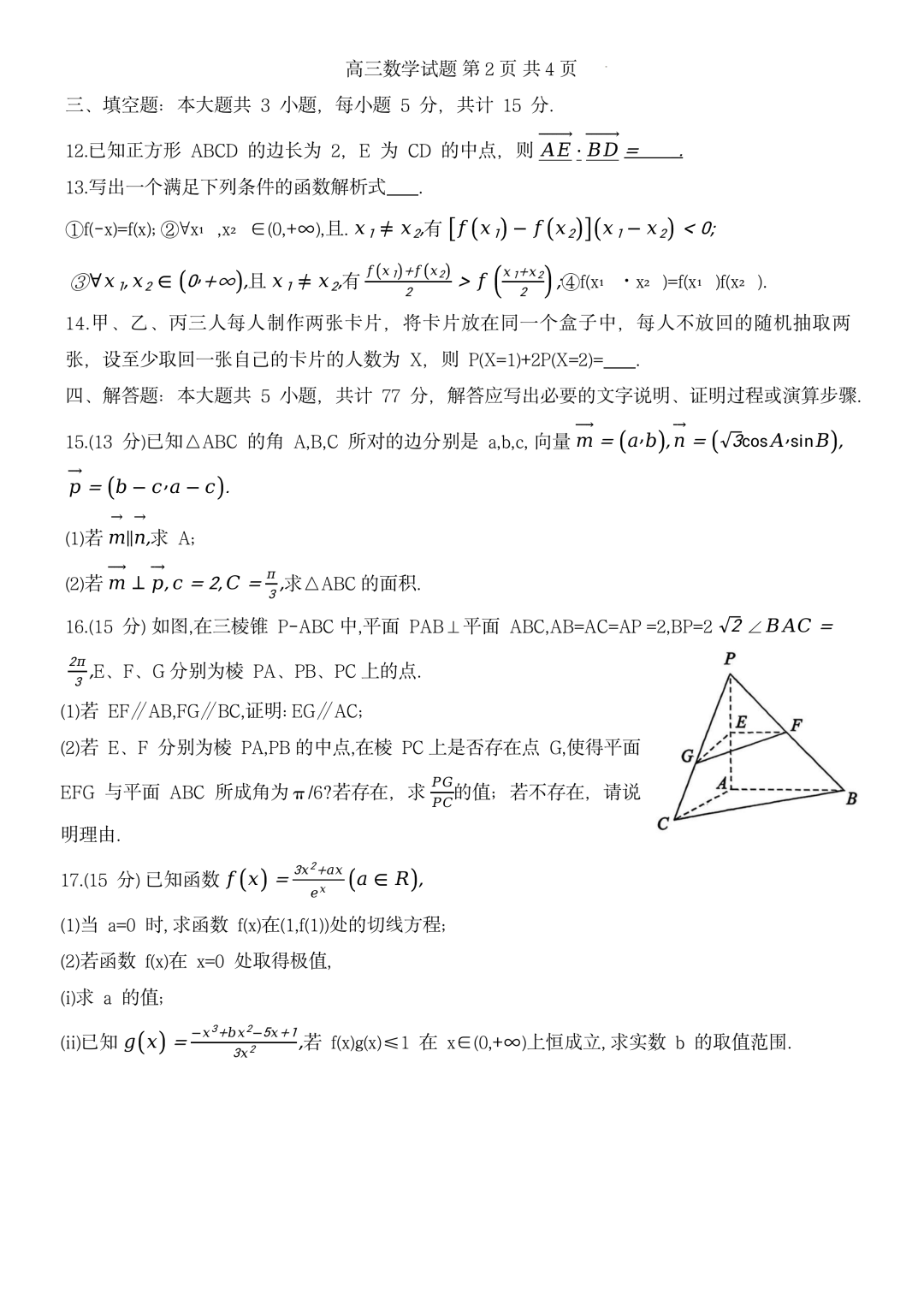 福建省福州市2026届高三三月质量检测 福建省福州市2026届高三三月质量检测
