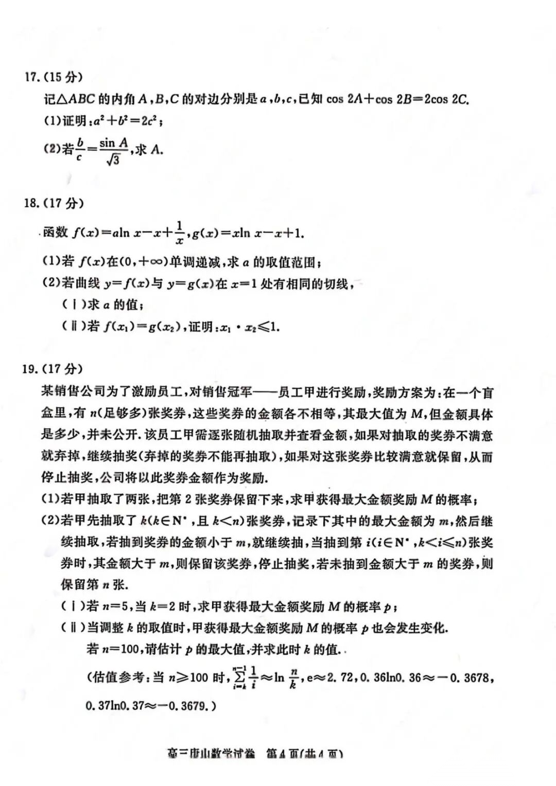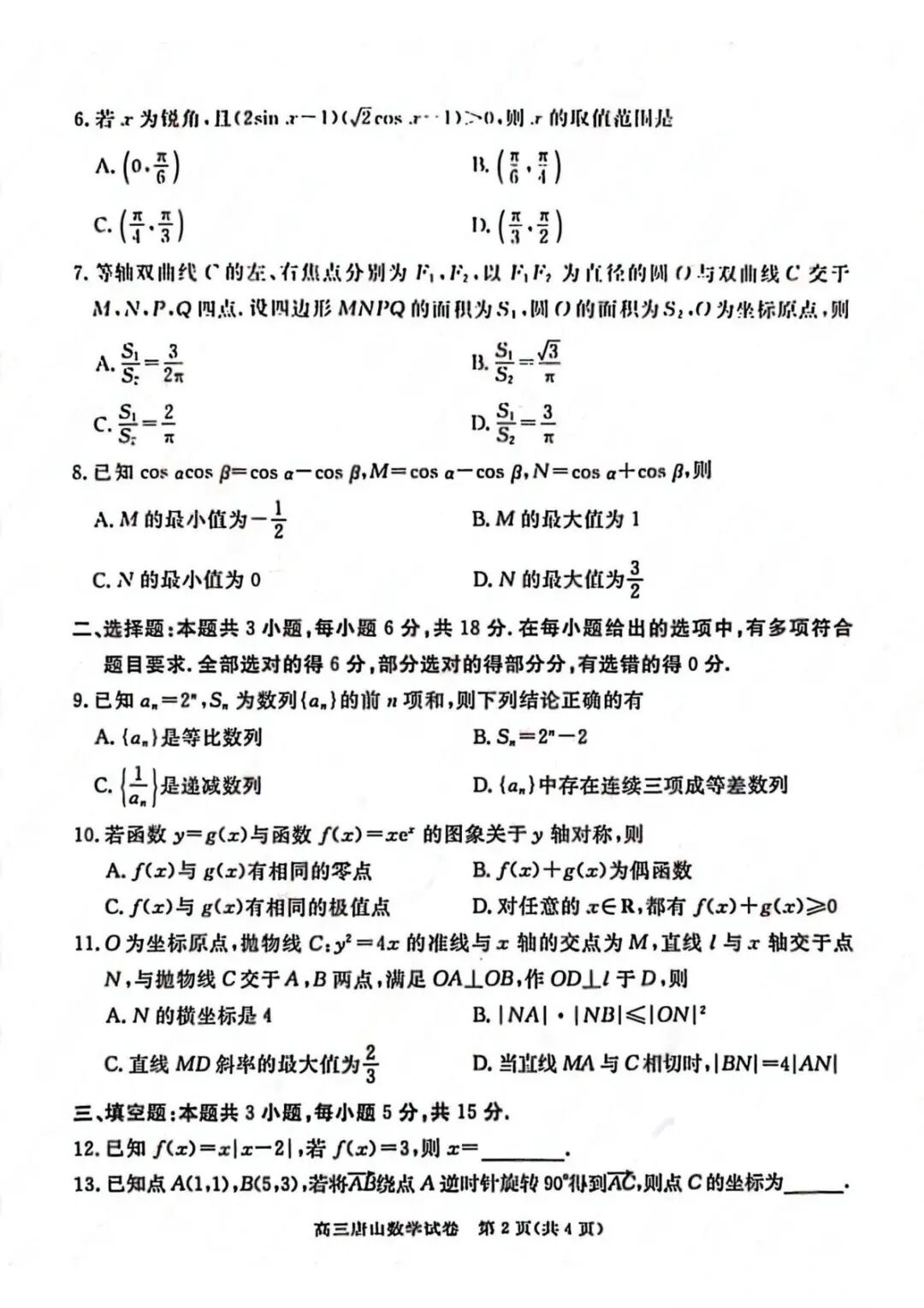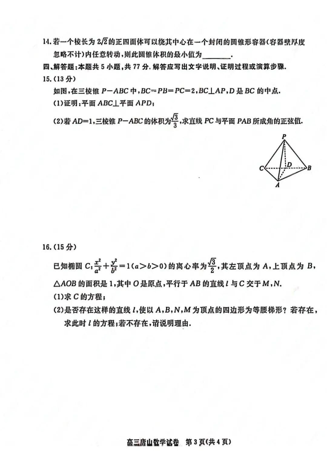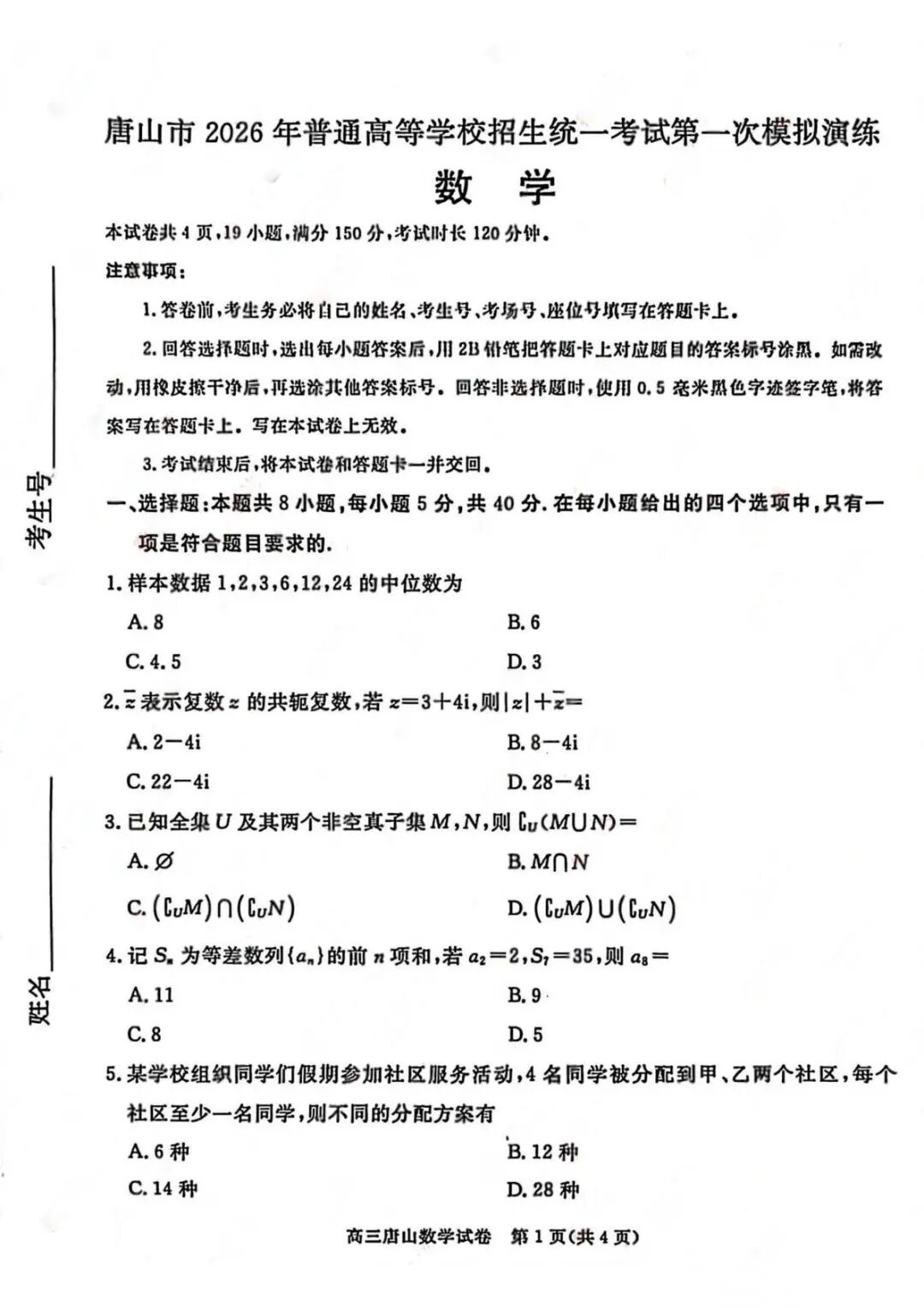 【超清无水印】:高三,河北唐山市2026年高三第一次模拟演练(唐山一模)