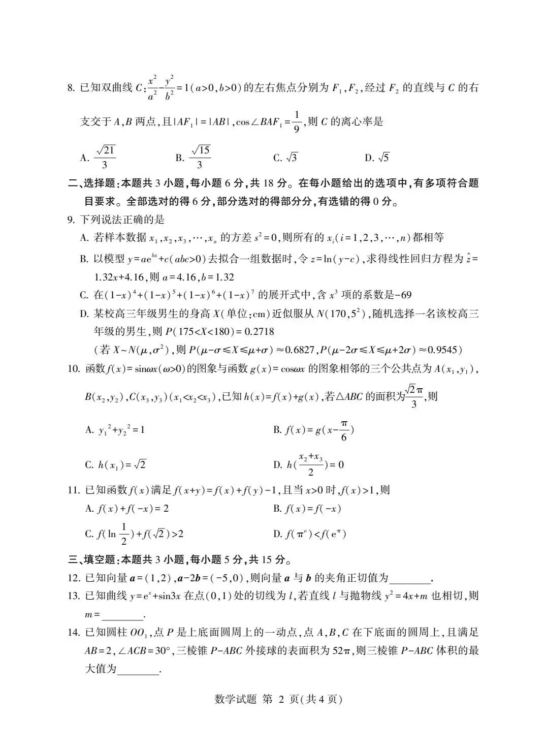 【超清无水印】:高三,四川省成都市树德中学高2023级高三下期开学考试 【超清无水印】:高三,四川省成都市树德中学高2023级高三下期开学考试
