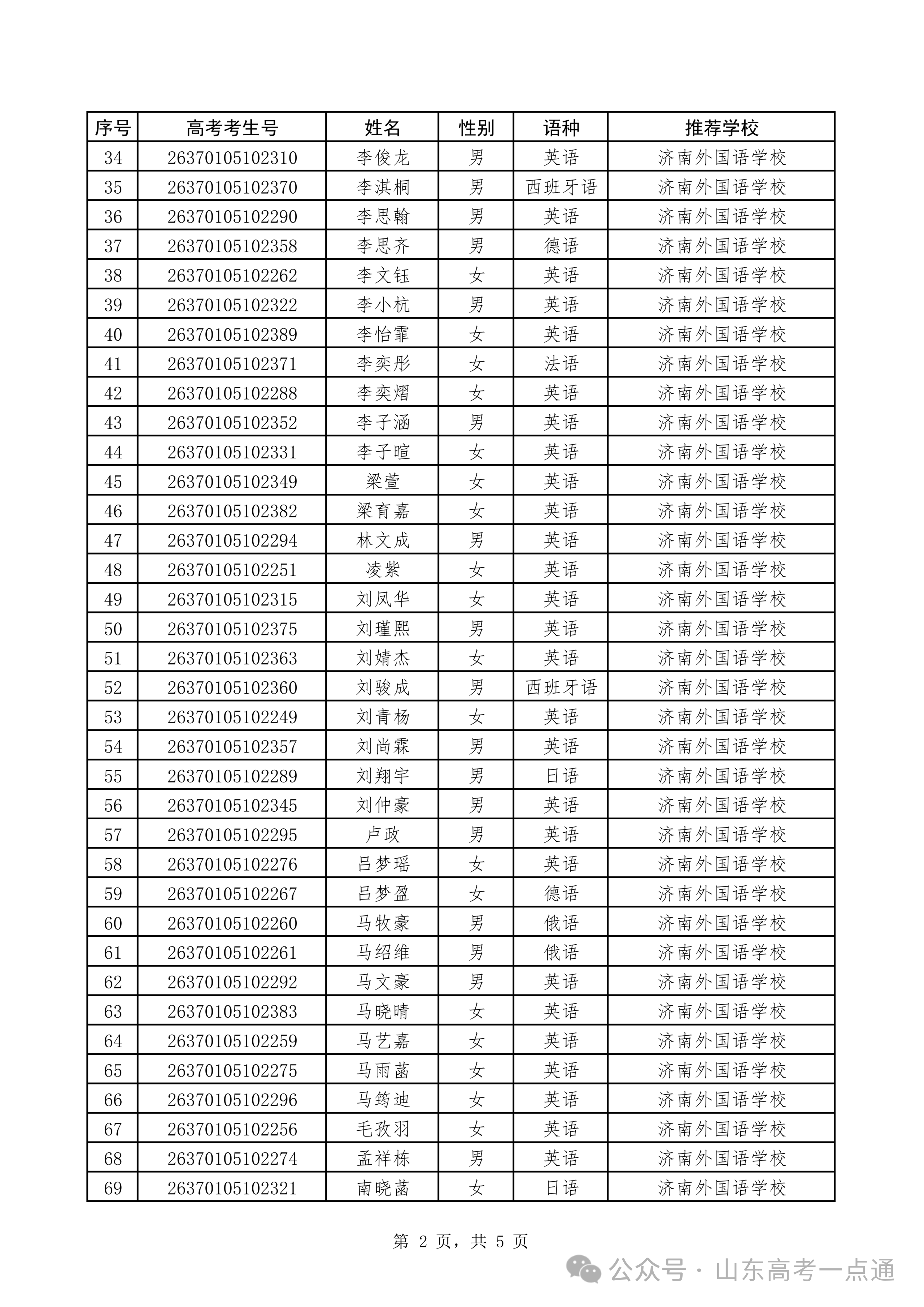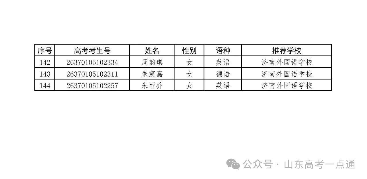 附件:2026年山东省外国语中学保送推荐资格名单公示