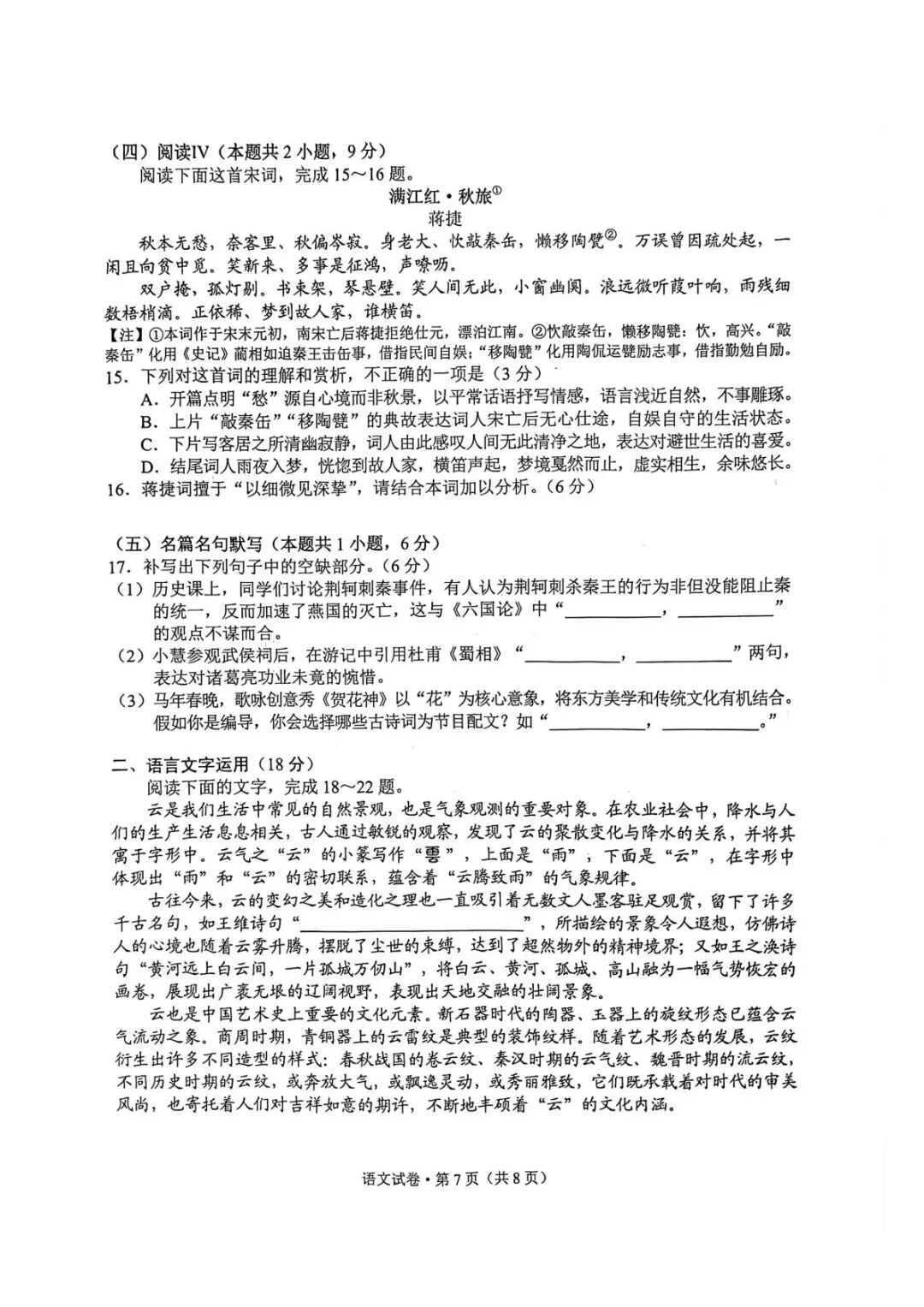 宁夏银川市高三下学期3月教学质量检测(银川一模)语文 宁夏银川市高三下学期3月教学质量检测(银川一模)语文