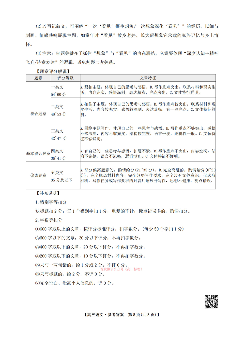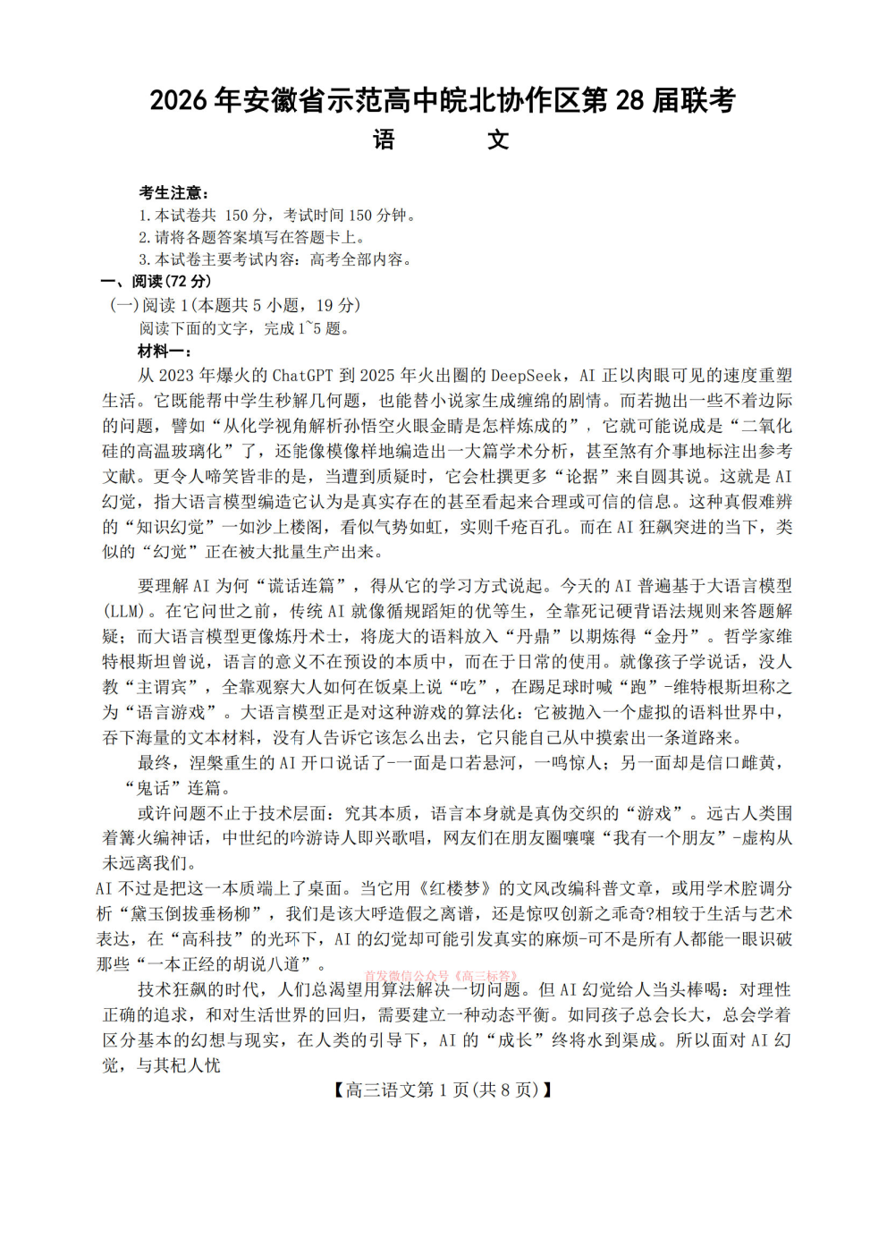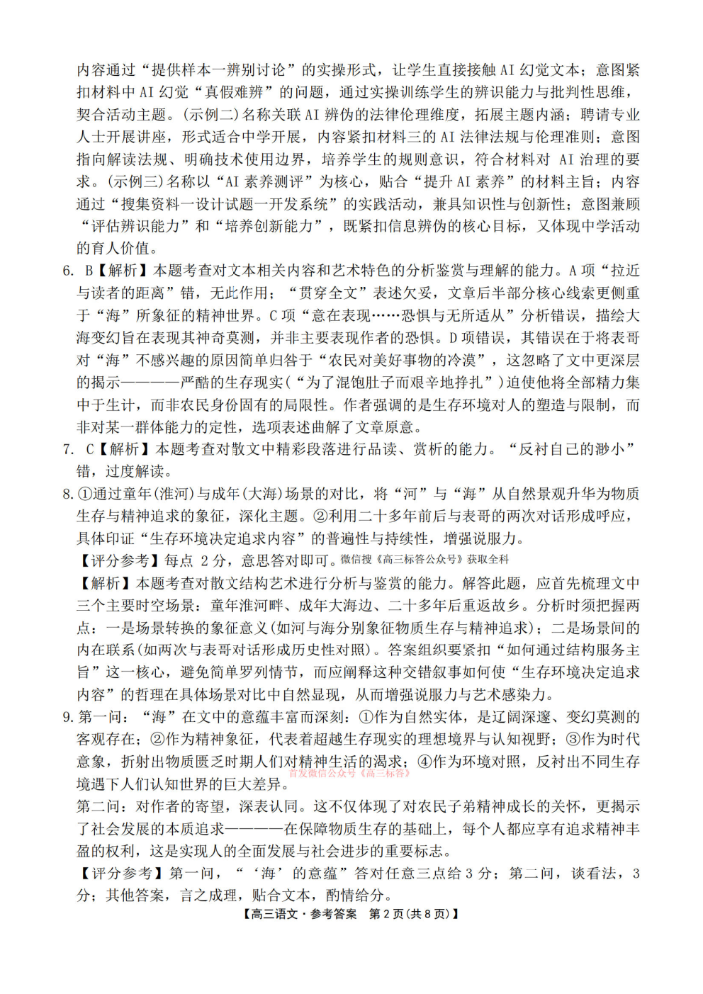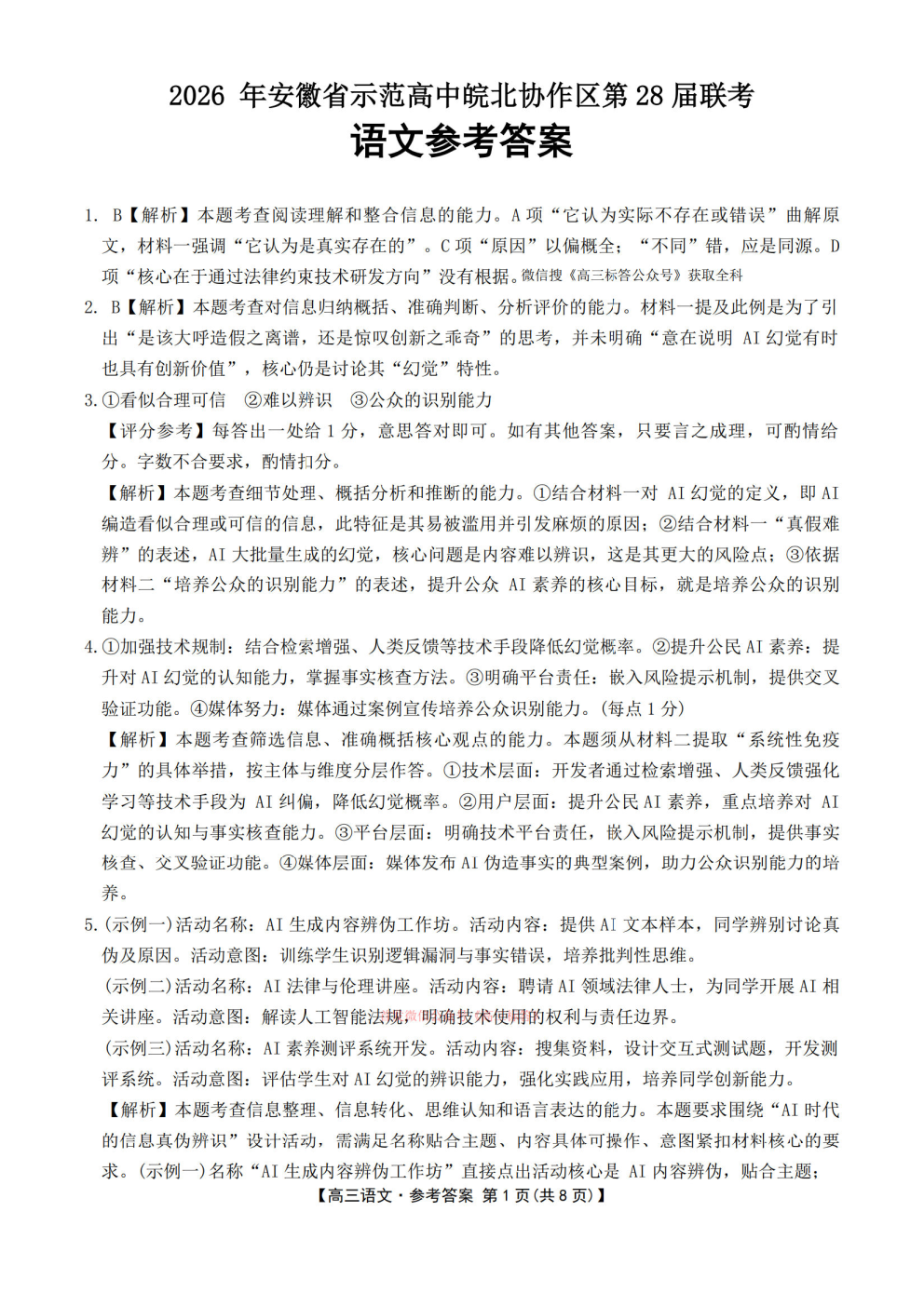 2026华大新高考联盟高三3月联考答案 2026华大新高考联盟高三3月联考答案