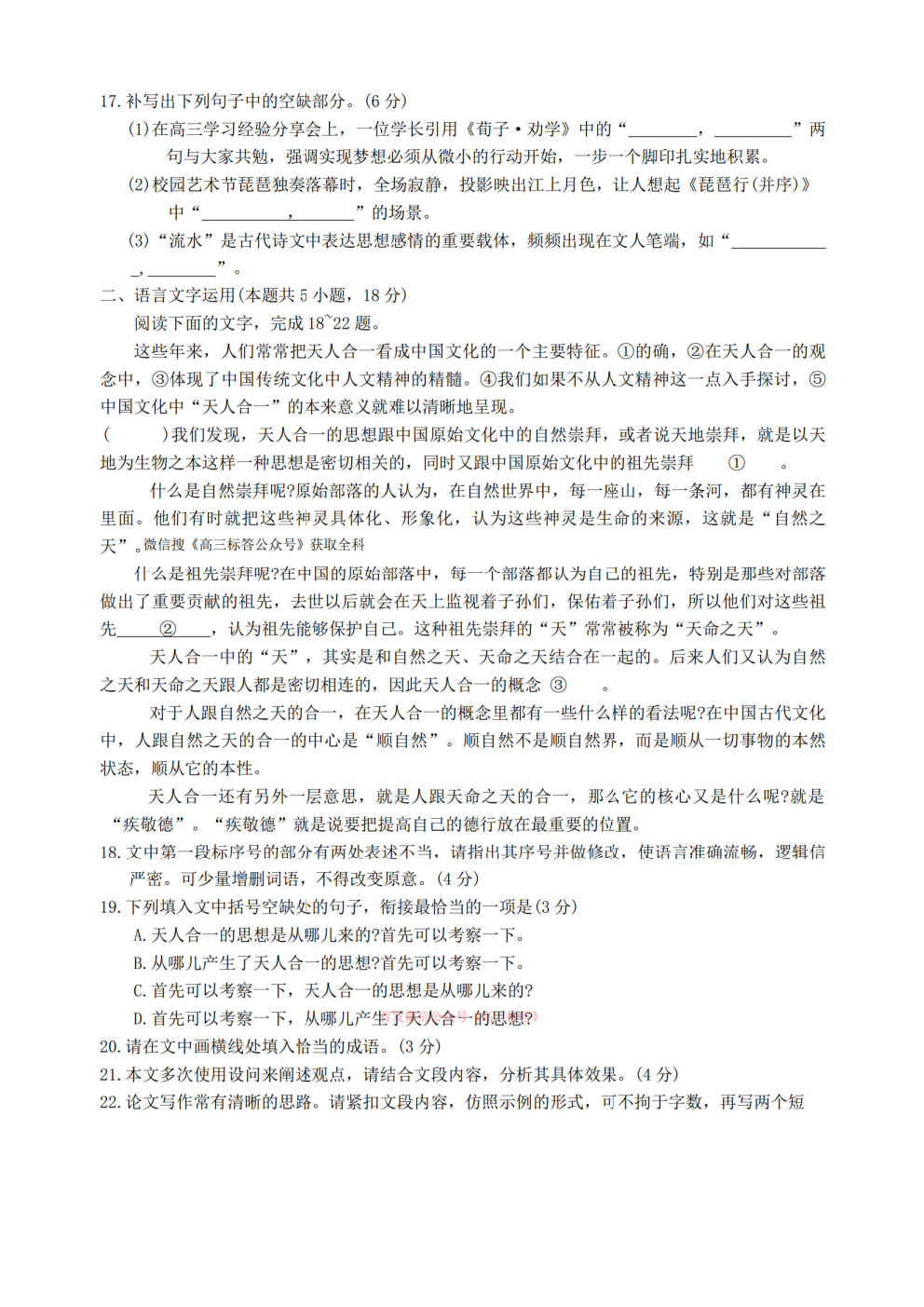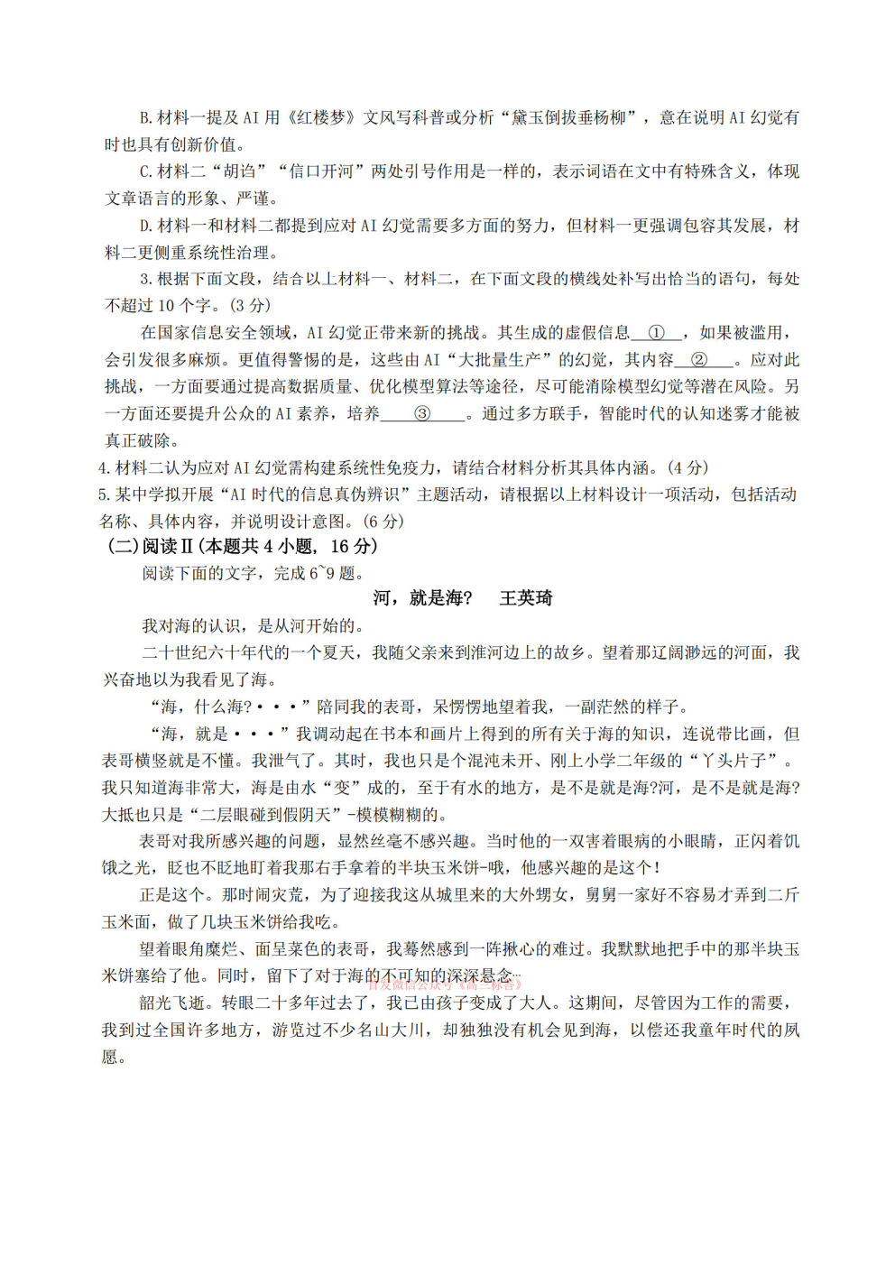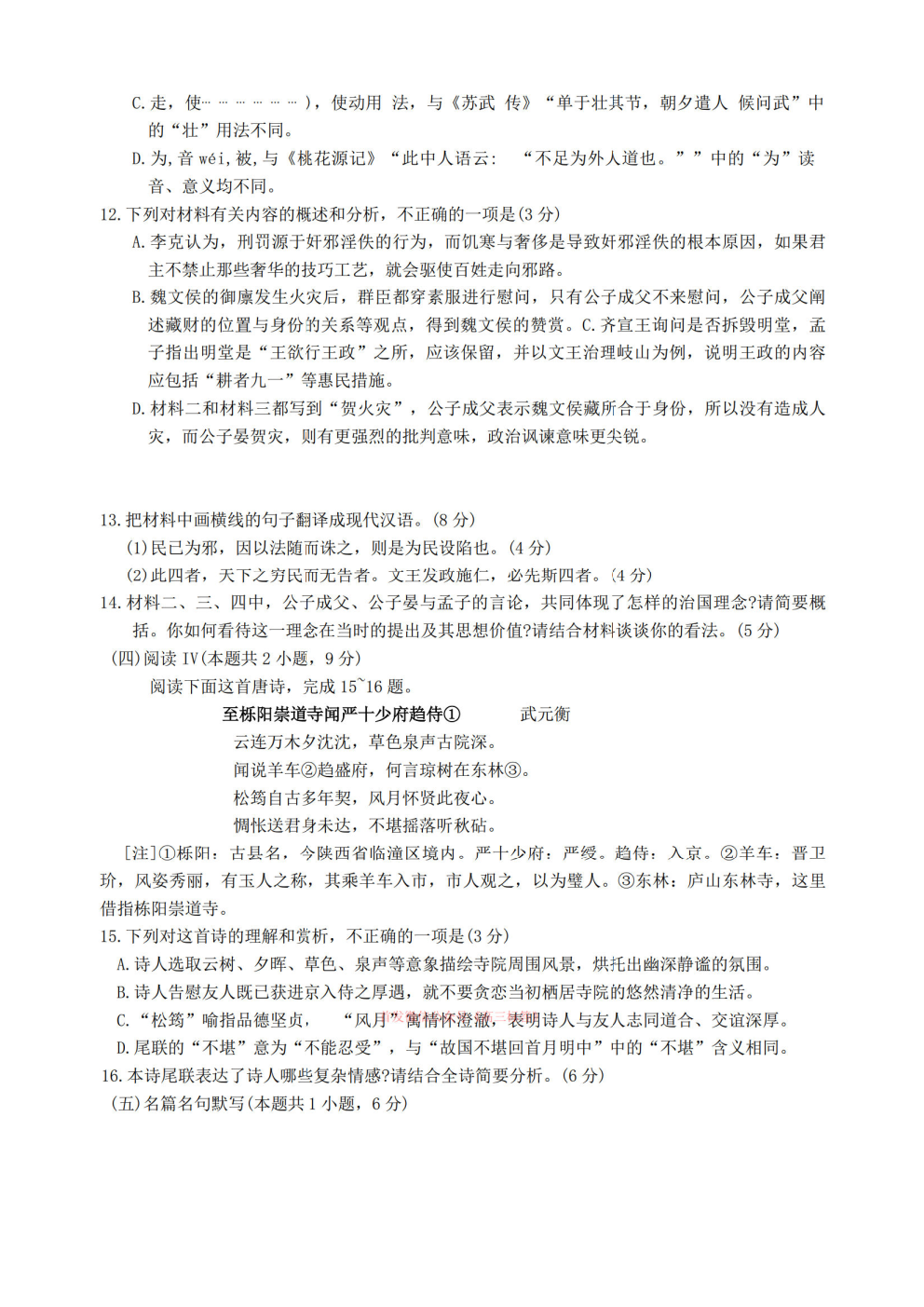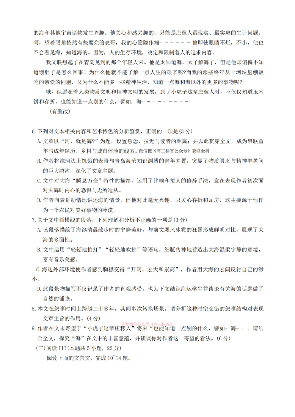 2026华大新高考联盟高三3月联考答案 2026华大新高考联盟高三3月联考答案