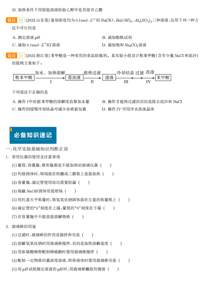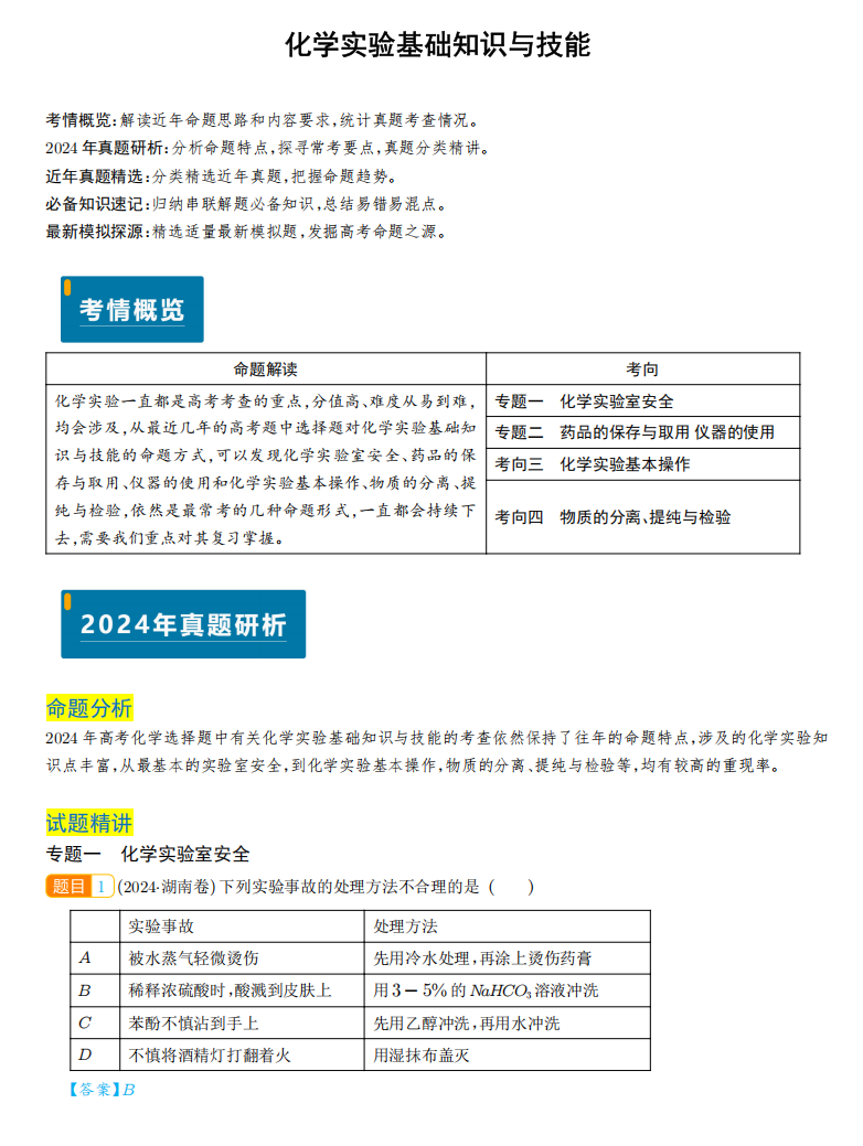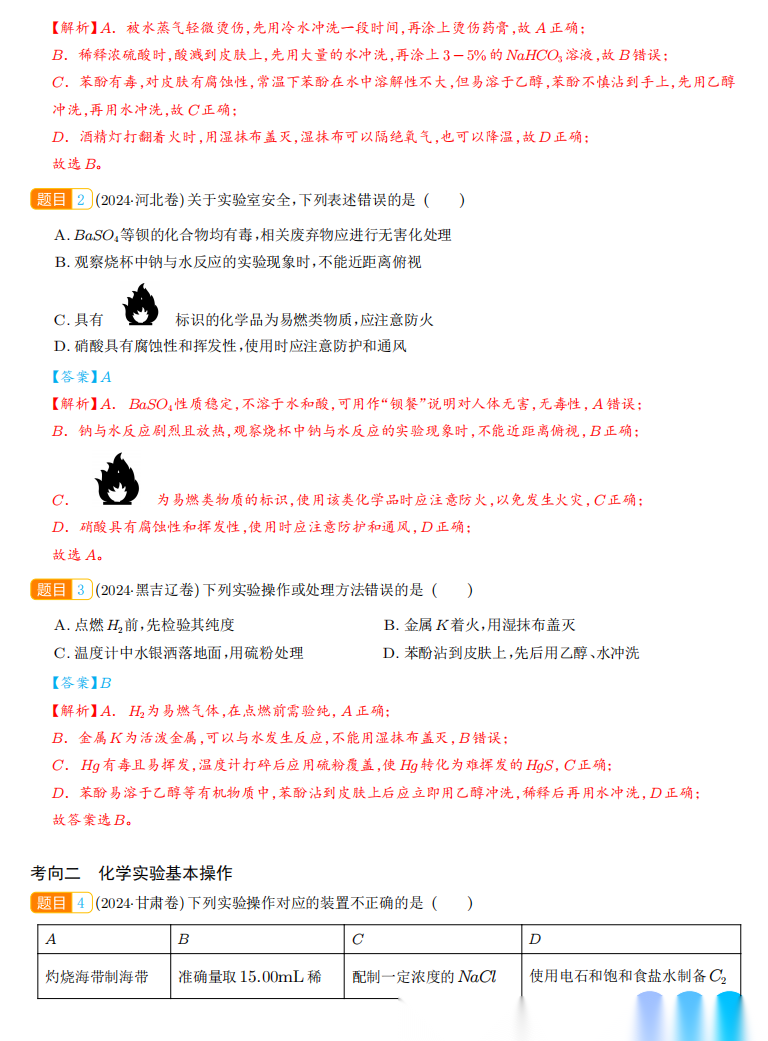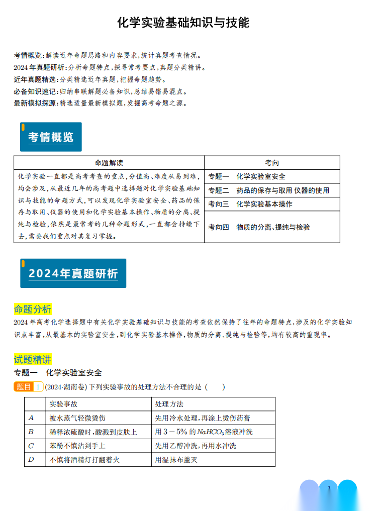 【高考化学】【化学实验】化学实验基础知识与技能 学生版+解析版(完整版)