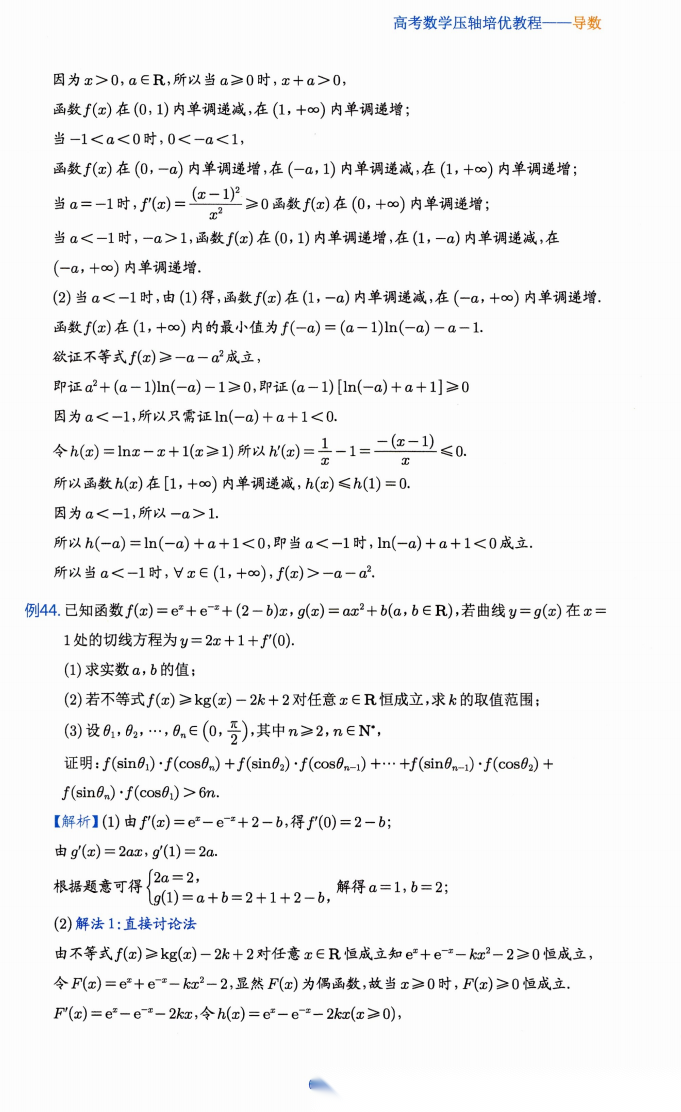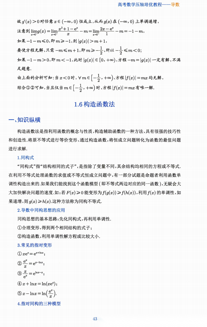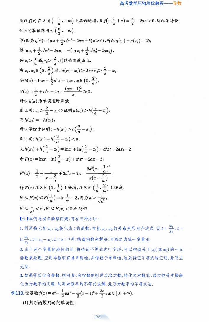 【高考数学】【压轴培优】【导数培优】高考数学压轴培优教程----导数压轴培优教程(曾广荣,刘侠,朱利春老师主编)(375页完整版)