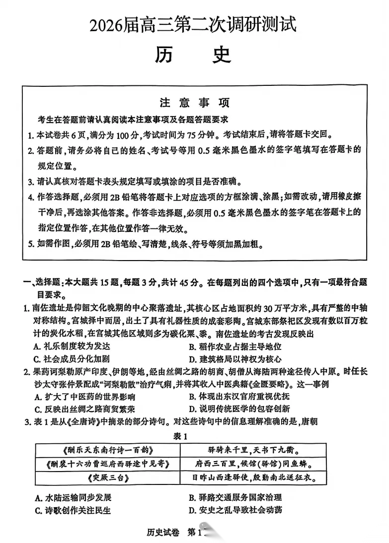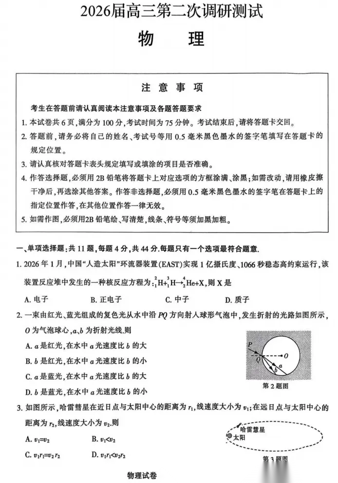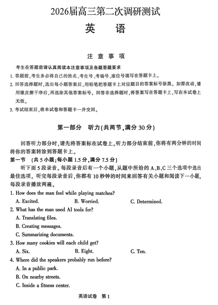 【江苏卷】江苏省苏北南通、徐州、扬州、连云港、淮安、泰州、宿迁七市2026届高三第二次调研考试(苏北七市二模)(3.25-3.27)全科试卷+答案