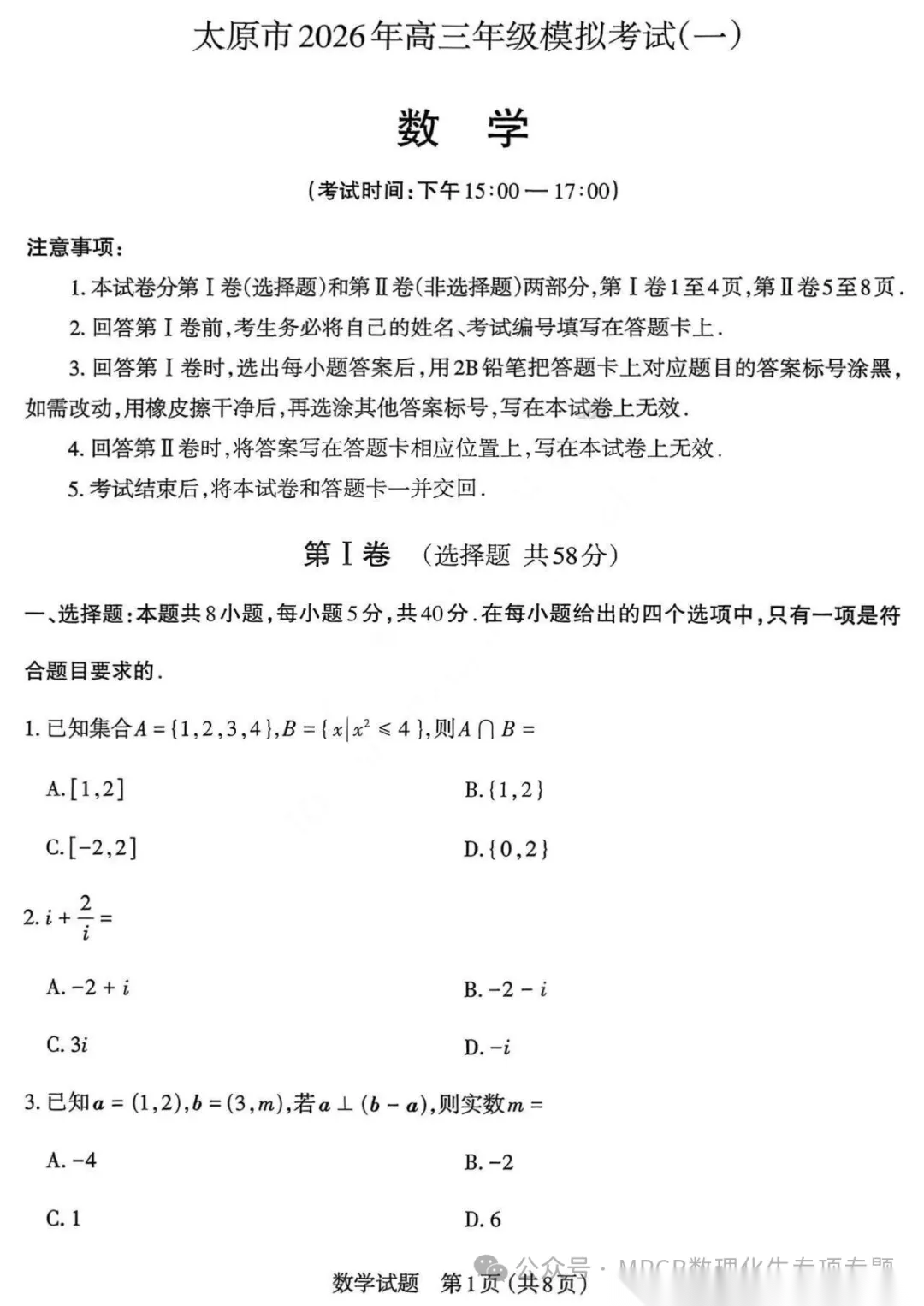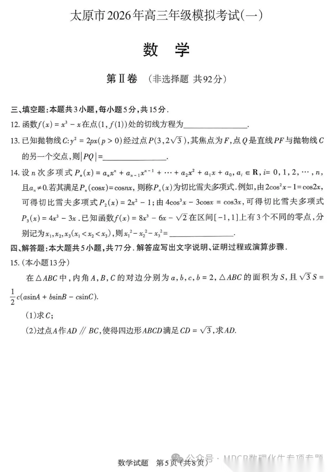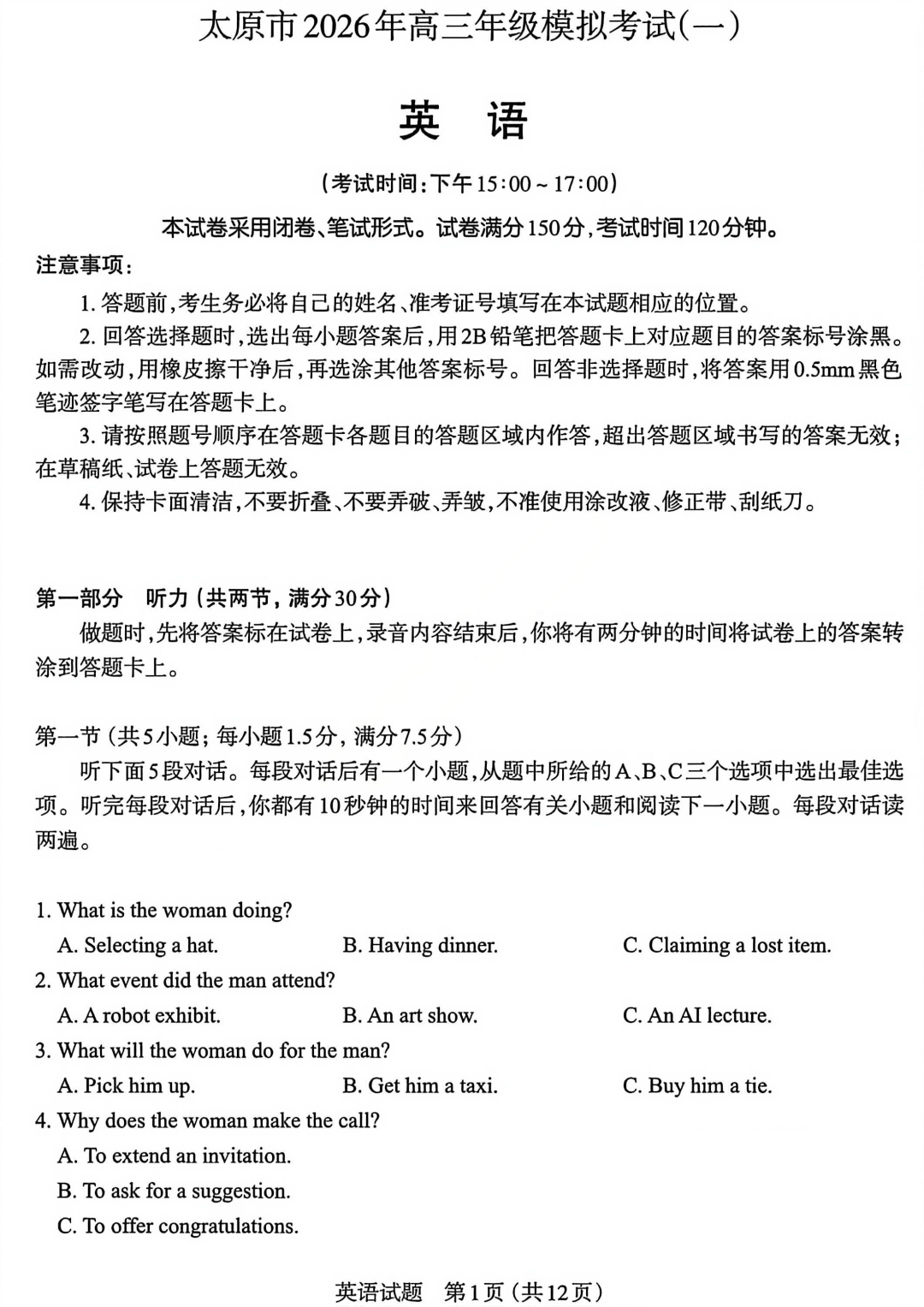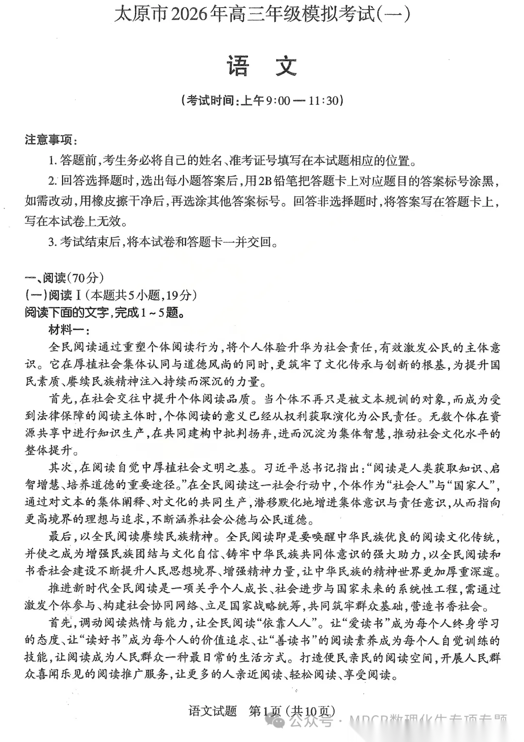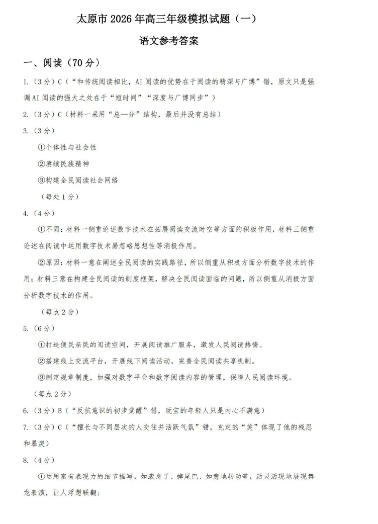 【西北卷】【山西卷】山西省太原市2026年高三年级模拟考试(一)(太原一模)(3.25-3.27) 全科试题卷+答案