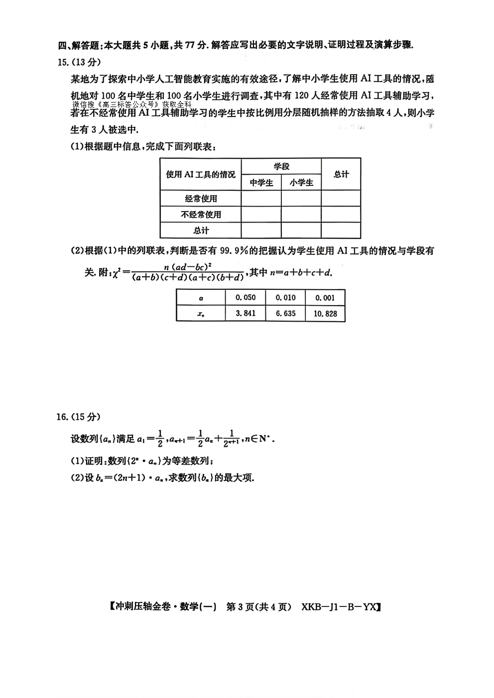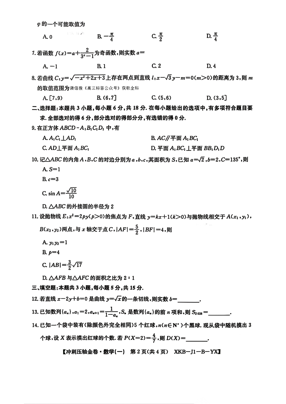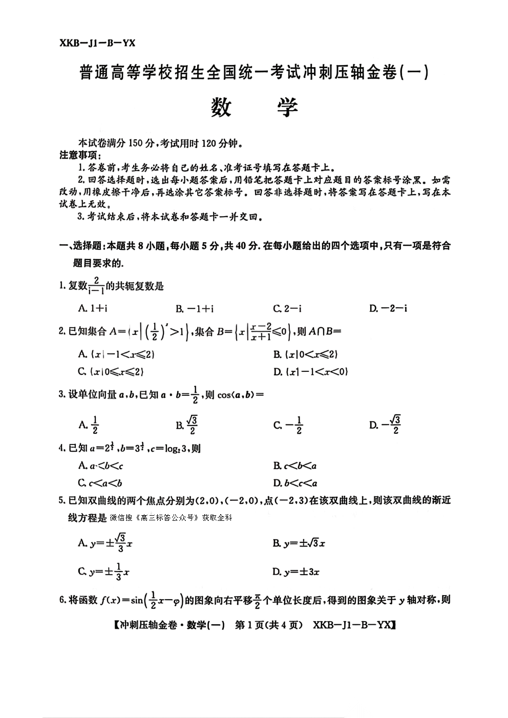 2026普通高等学校招生全国统一考试冲刺压轴金卷一