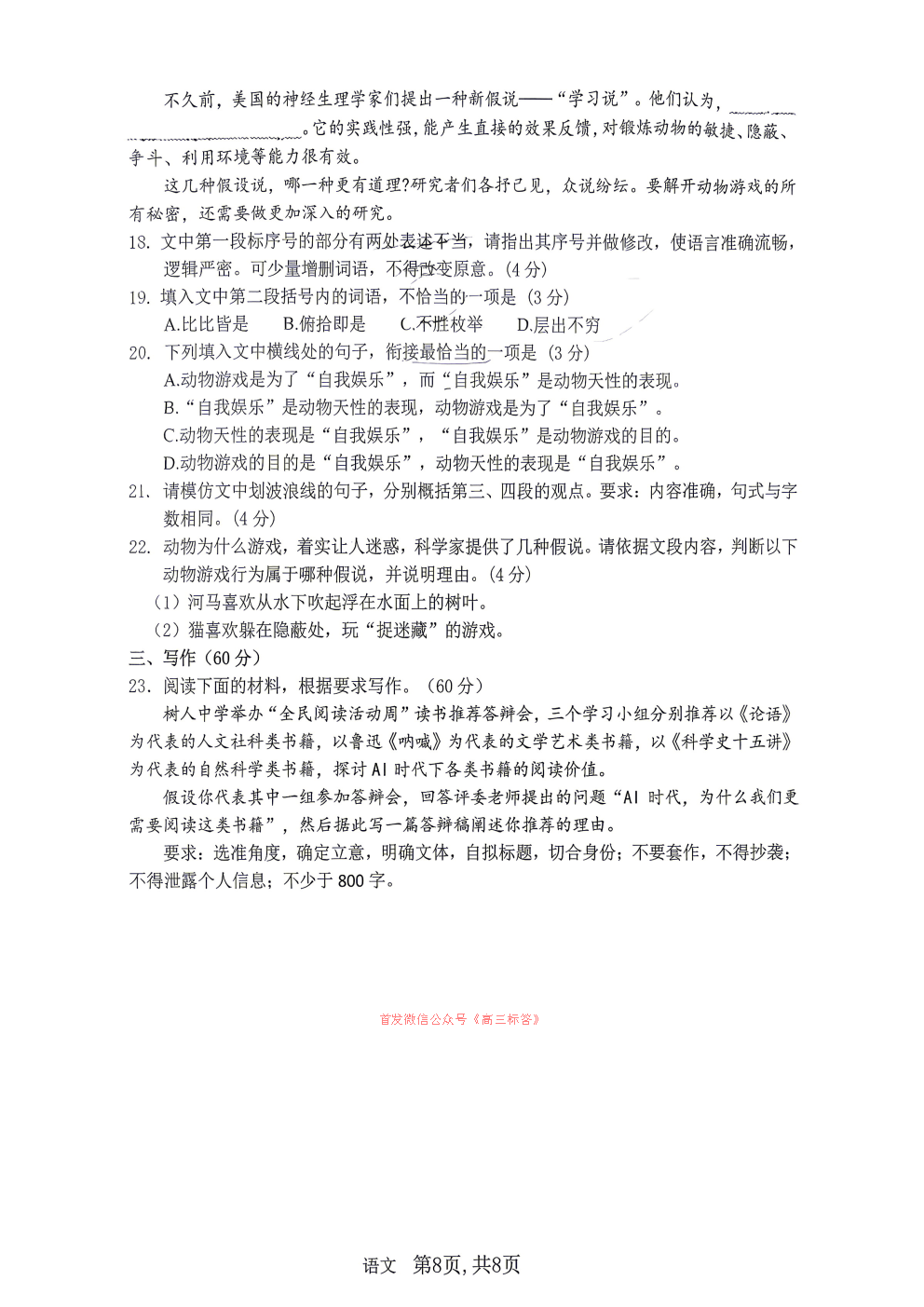 2026年普通高校招生考试仿真模拟卷三答案 2026年普通高校招生考试仿真模拟卷三答案