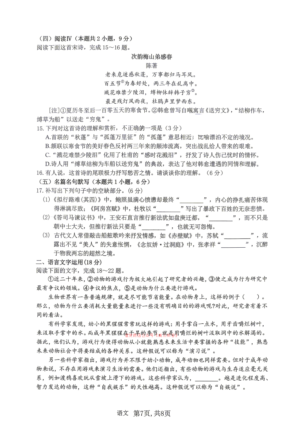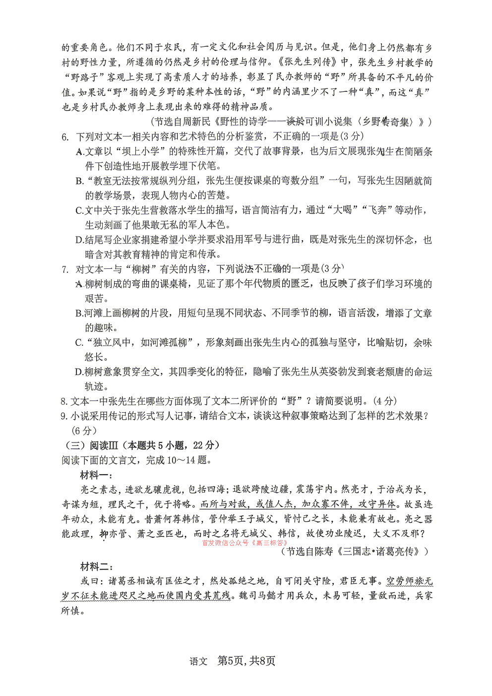 2026九师联盟高三3月30联考答案 2026九师联盟高三3月30联考答案