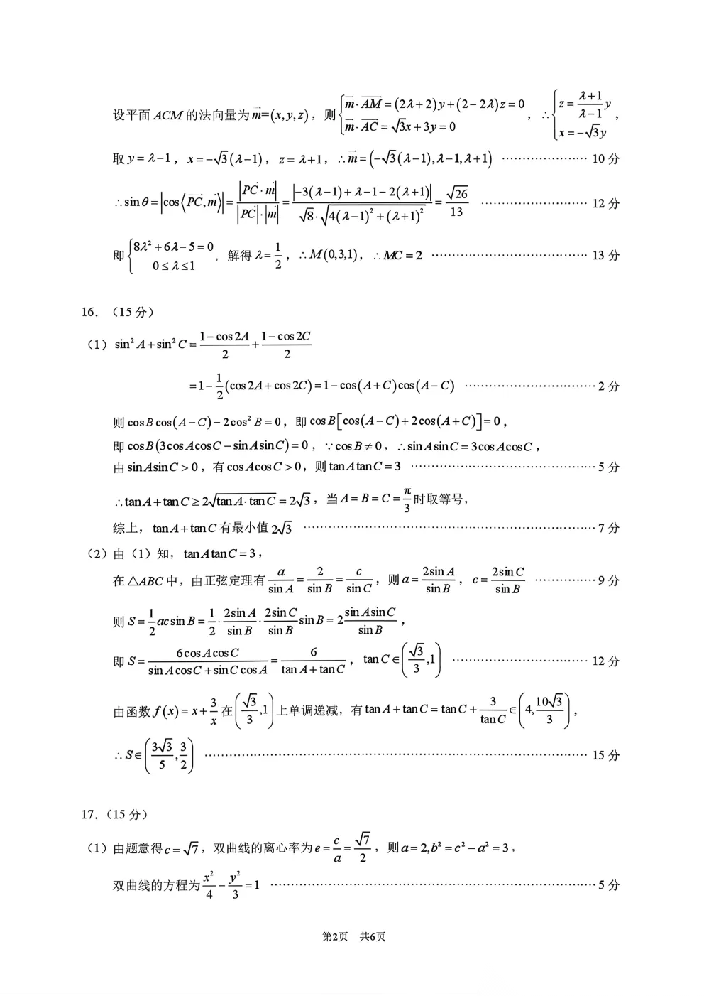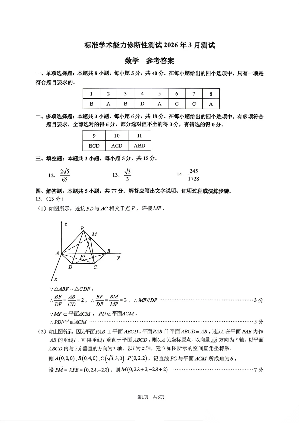 2026届娄底市高三3月联考答案 2026届娄底市高三3月联考答案
