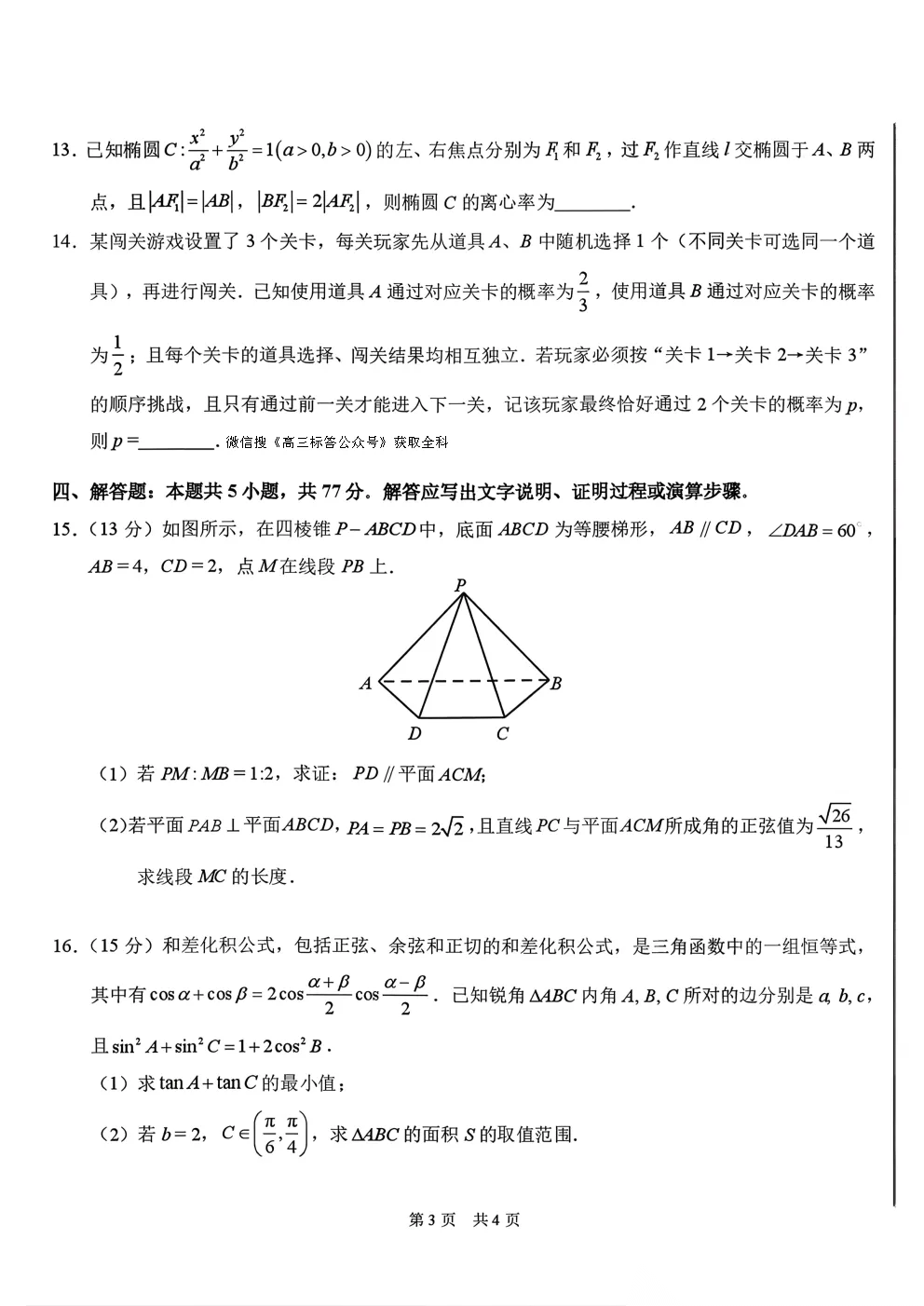 2025高考真题试卷及答题卡 2025高考真题试卷及答题卡