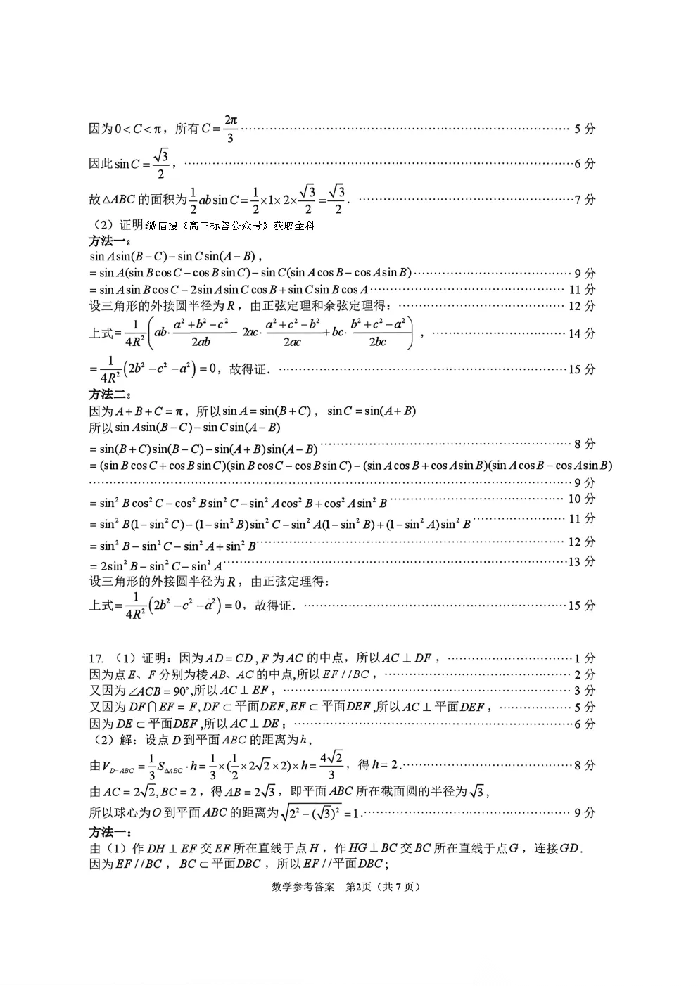 2026届娄底市高三3月联考答案 2026届娄底市高三3月联考答案