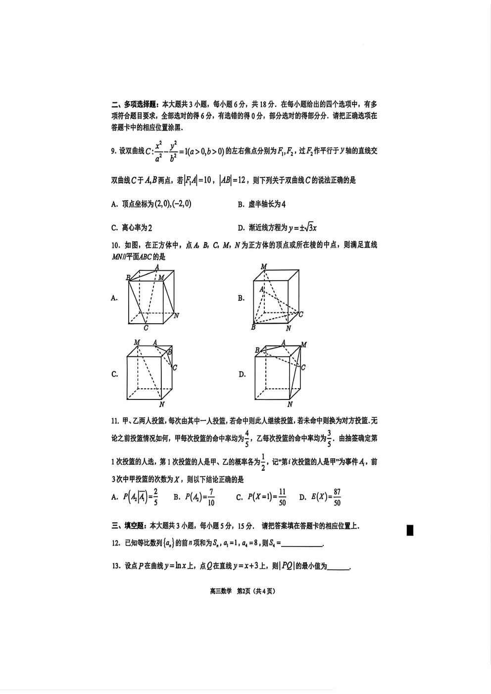山东省实验中学2026届高三3月保温测试 山东省实验中学2026届高三3月保温测试