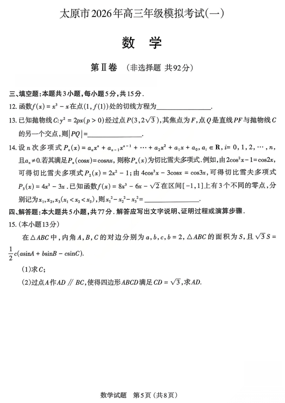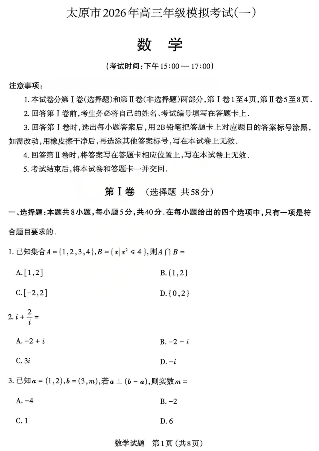 山西省太原市2026届高三下学期3月模拟考试(一)(太原一模)