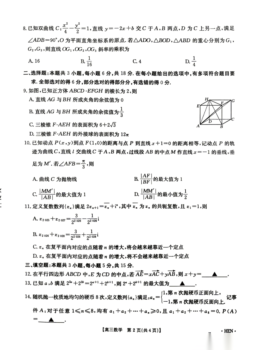 浙江省杭州二中2026届高三下学期3月月考 浙江省杭州二中2026届高三下学期3月月考