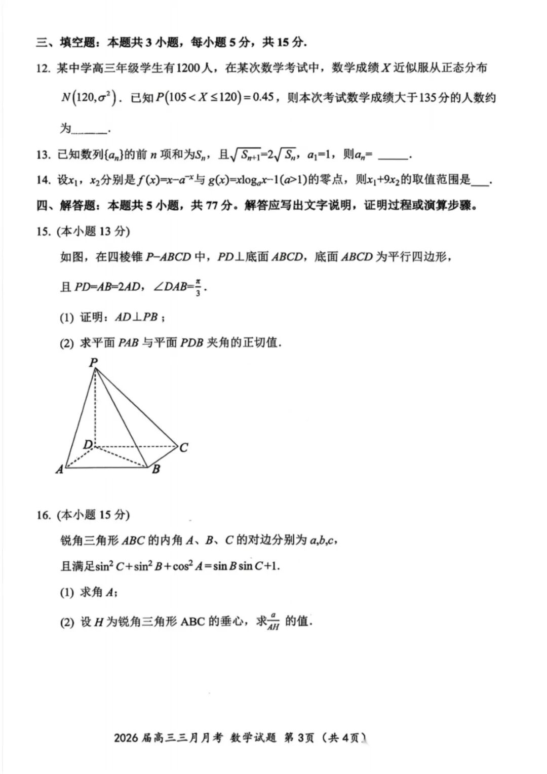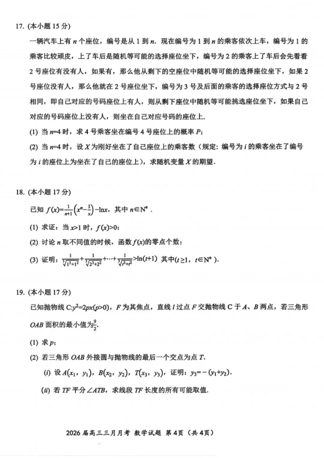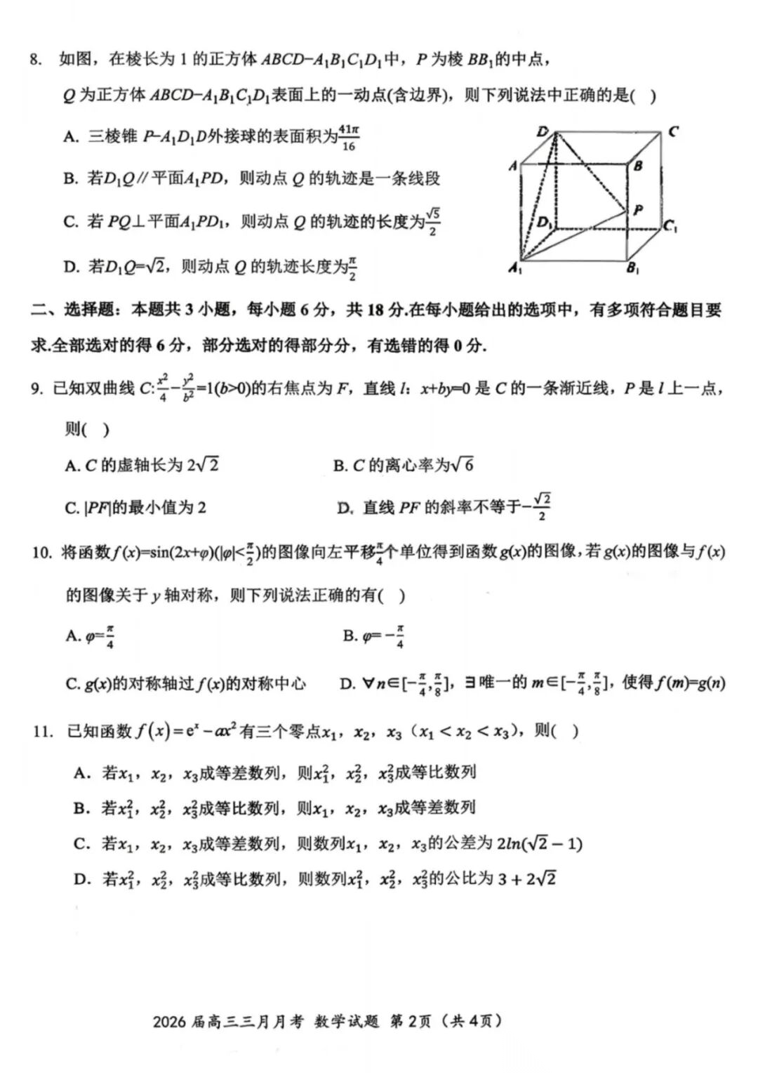 浙江省杭州二中2026届高三下学期3月月考 浙江省杭州二中2026届高三下学期3月月考