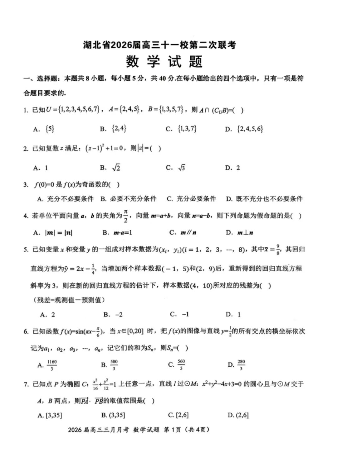 新疆乌鲁木齐地区2026届高三下学期第二次质量监测(乌鲁木齐二模) 新疆乌鲁木齐地区2026届高三下学期第二次质量监测(乌鲁木齐二模)