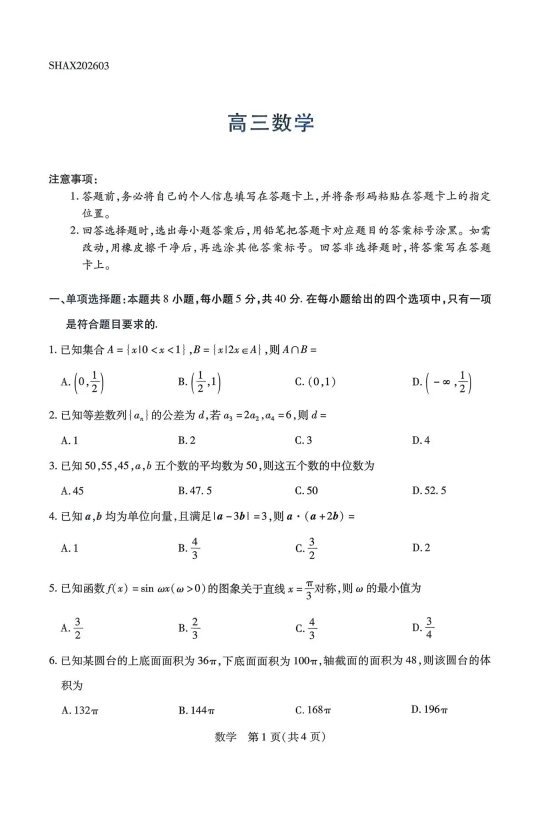 山西省、陕西省天一大联考2026届高三下学期3月联考