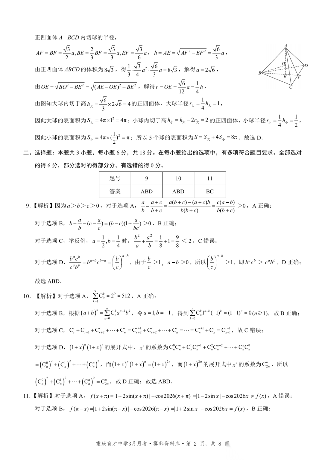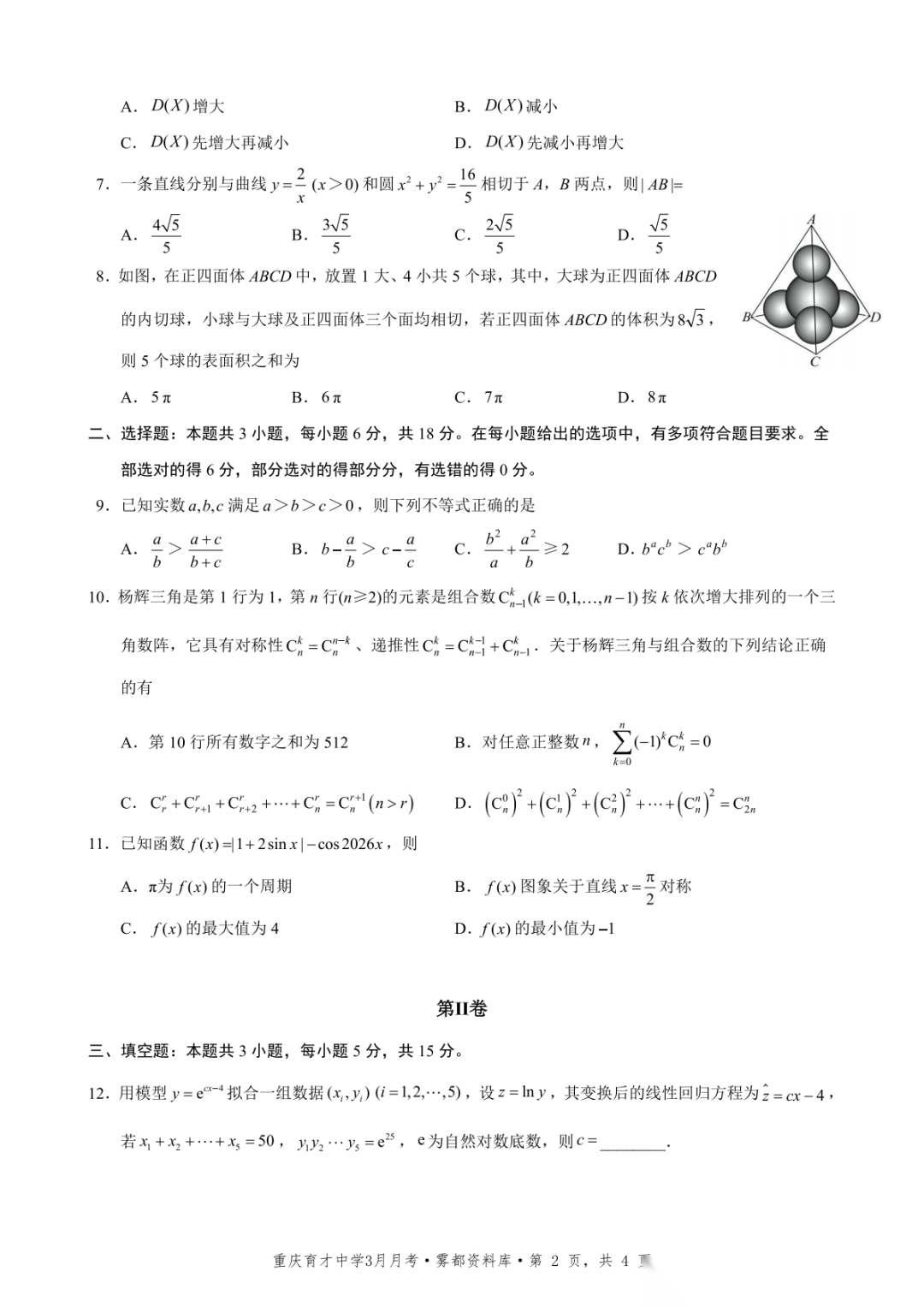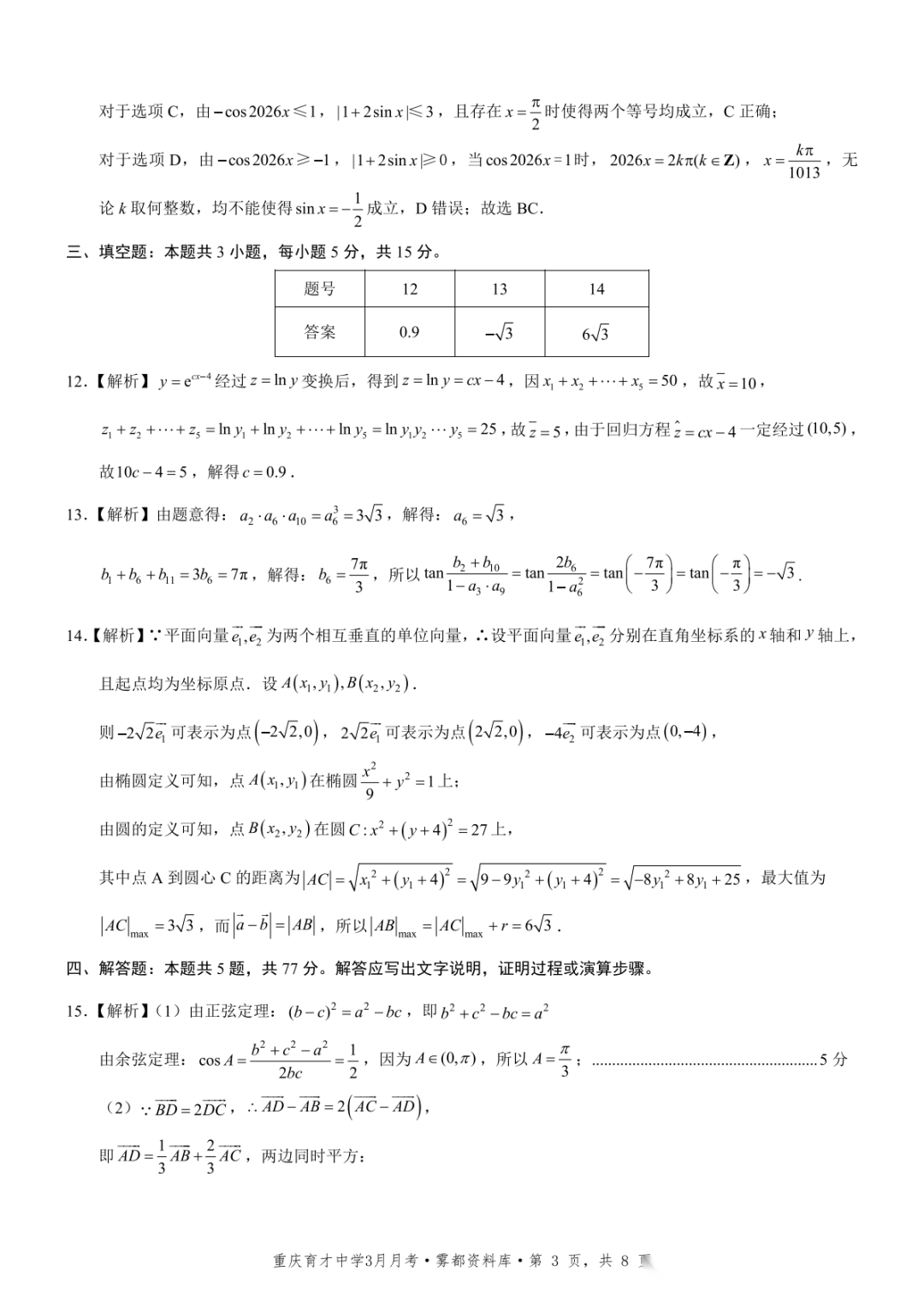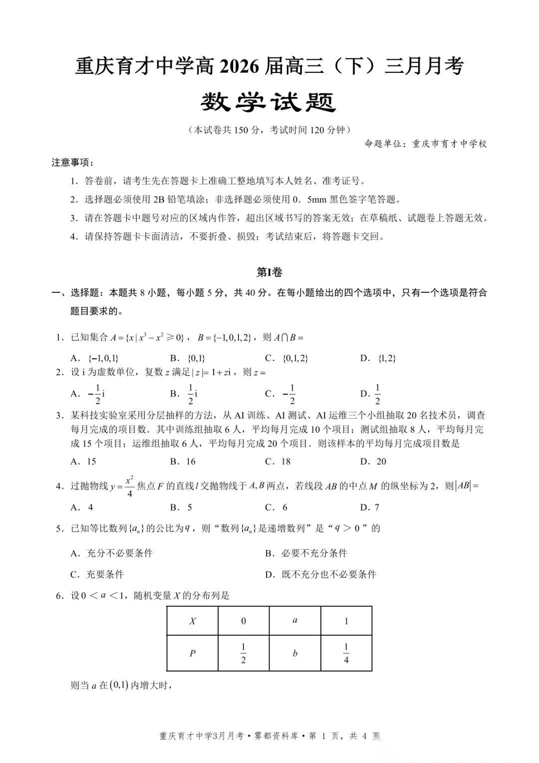 【全科】重庆市育才中学高2026届高三下学期三月月考