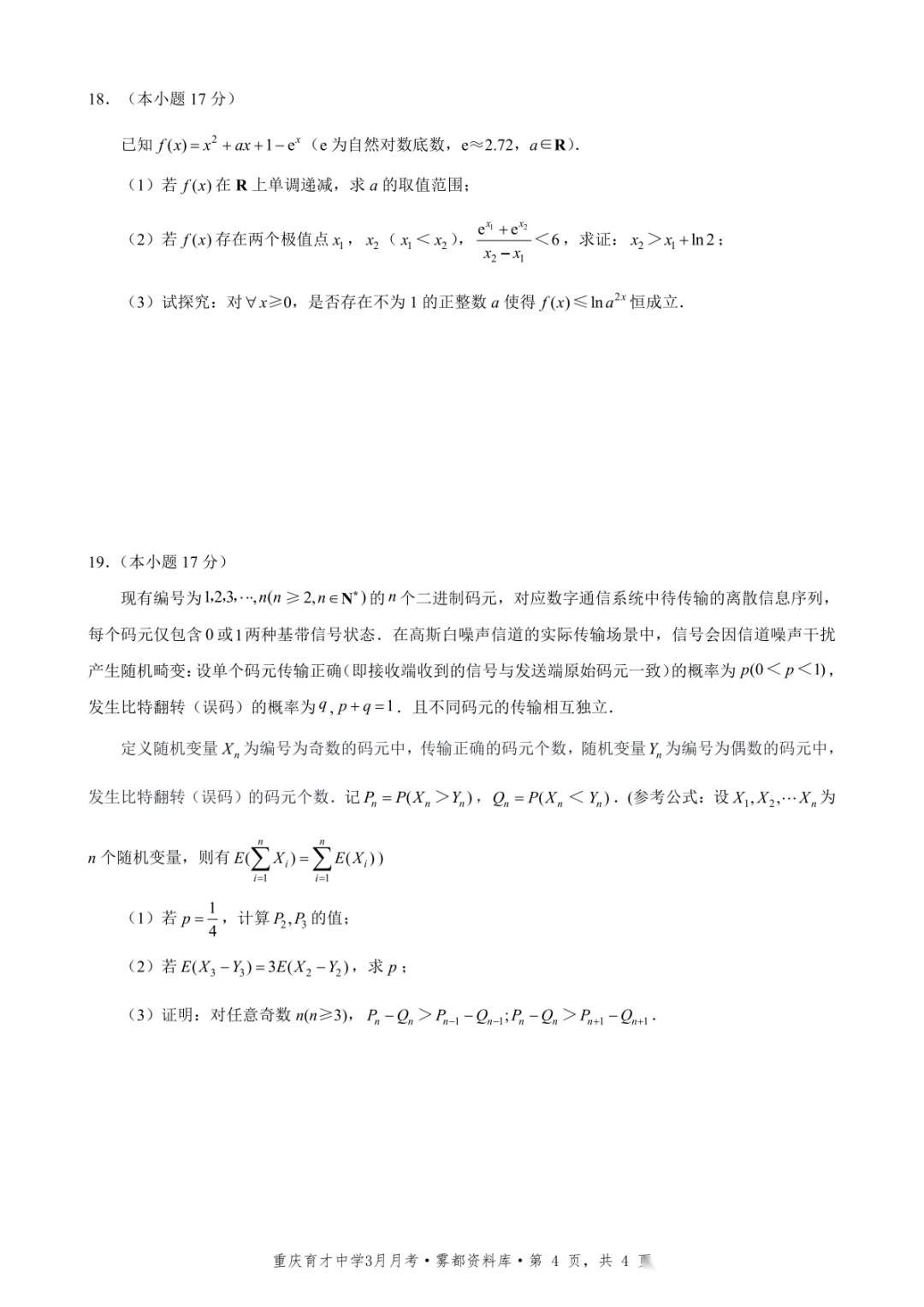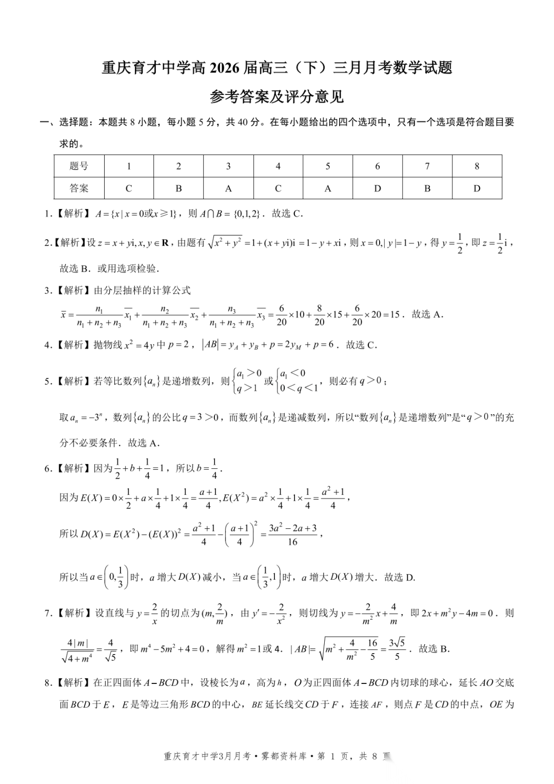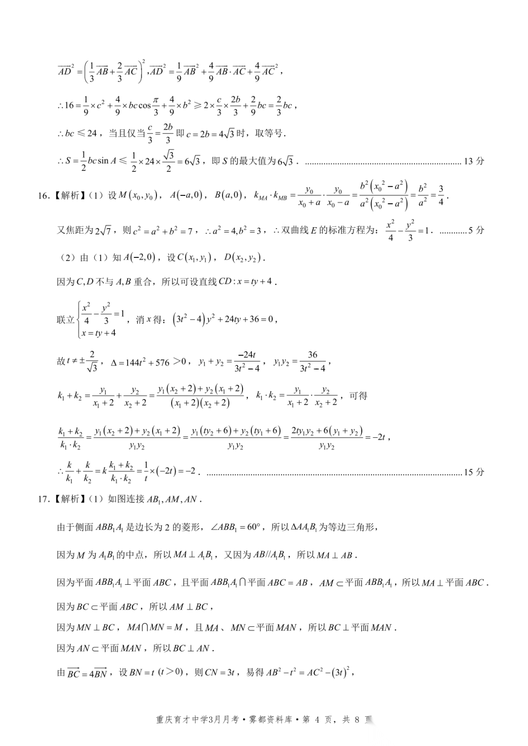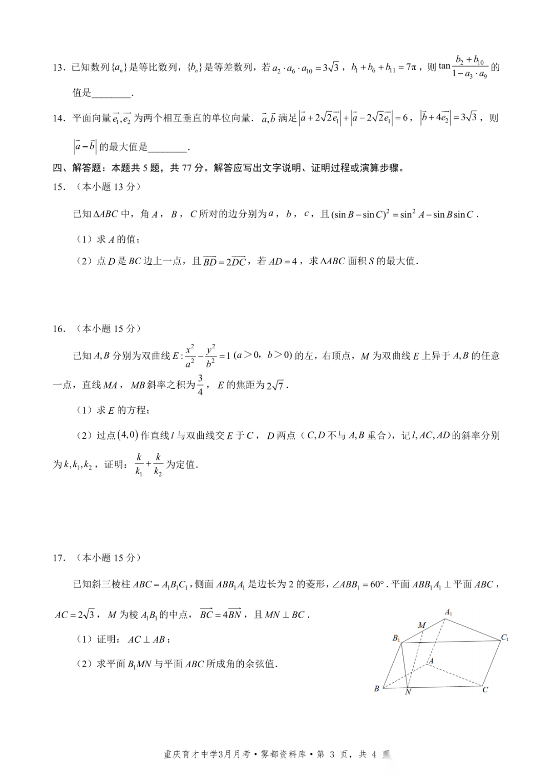 【全科】重庆市育才中学高2026届高三下学期三月月考