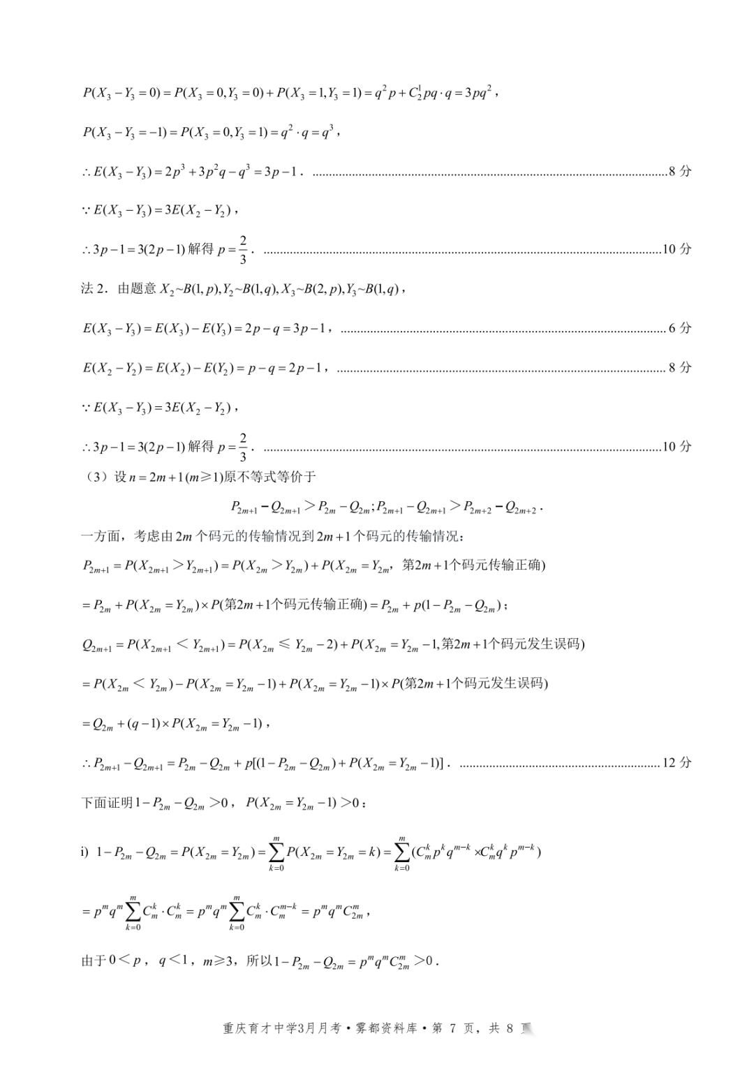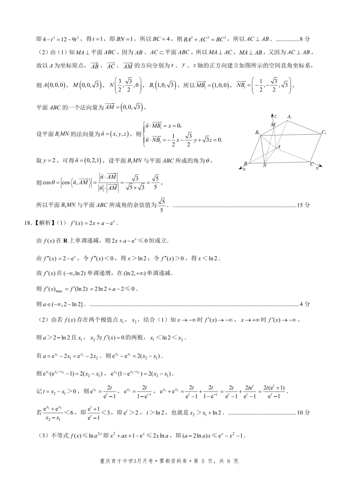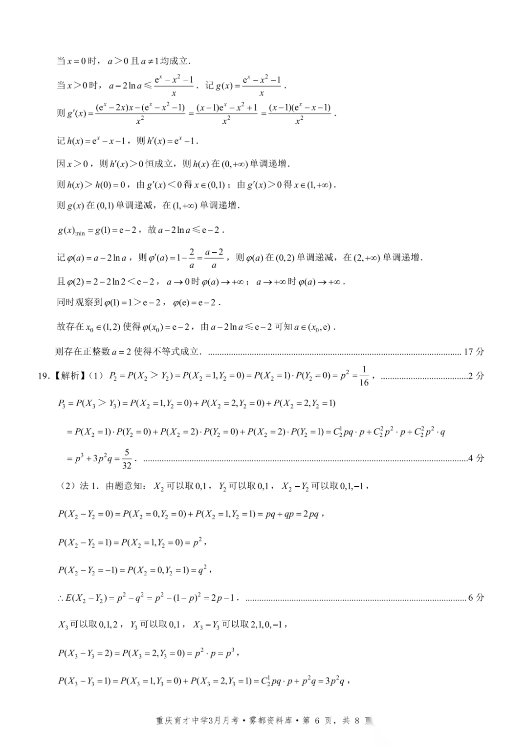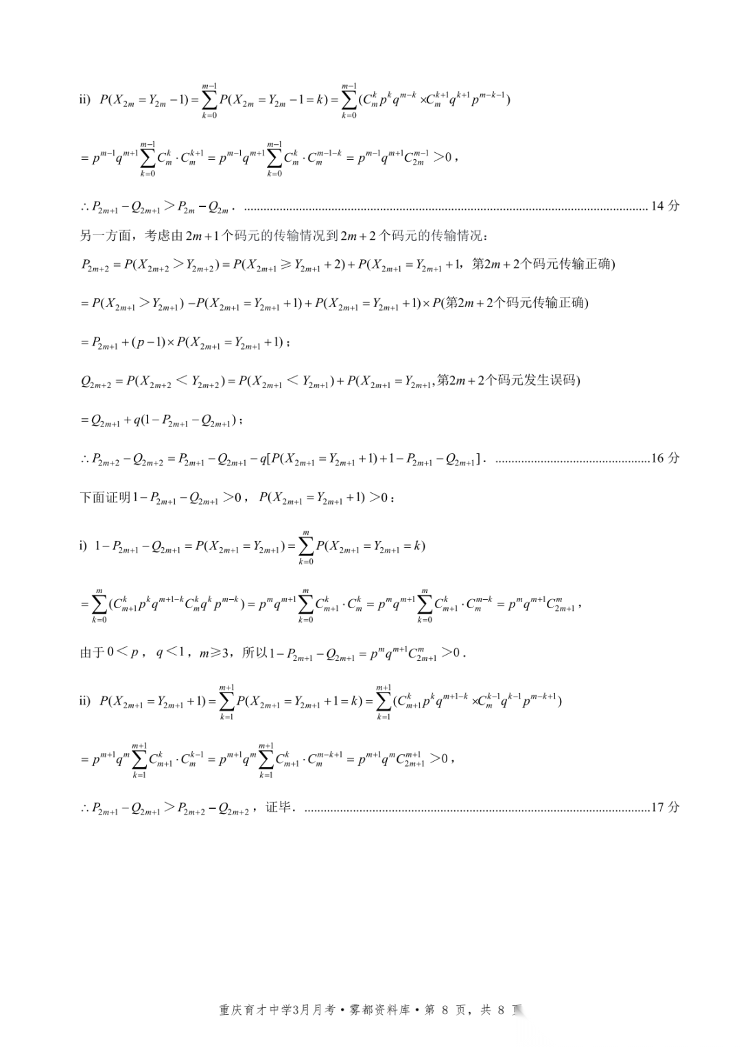 【全科】重庆市育才中学高2026届高三下学期三月月考