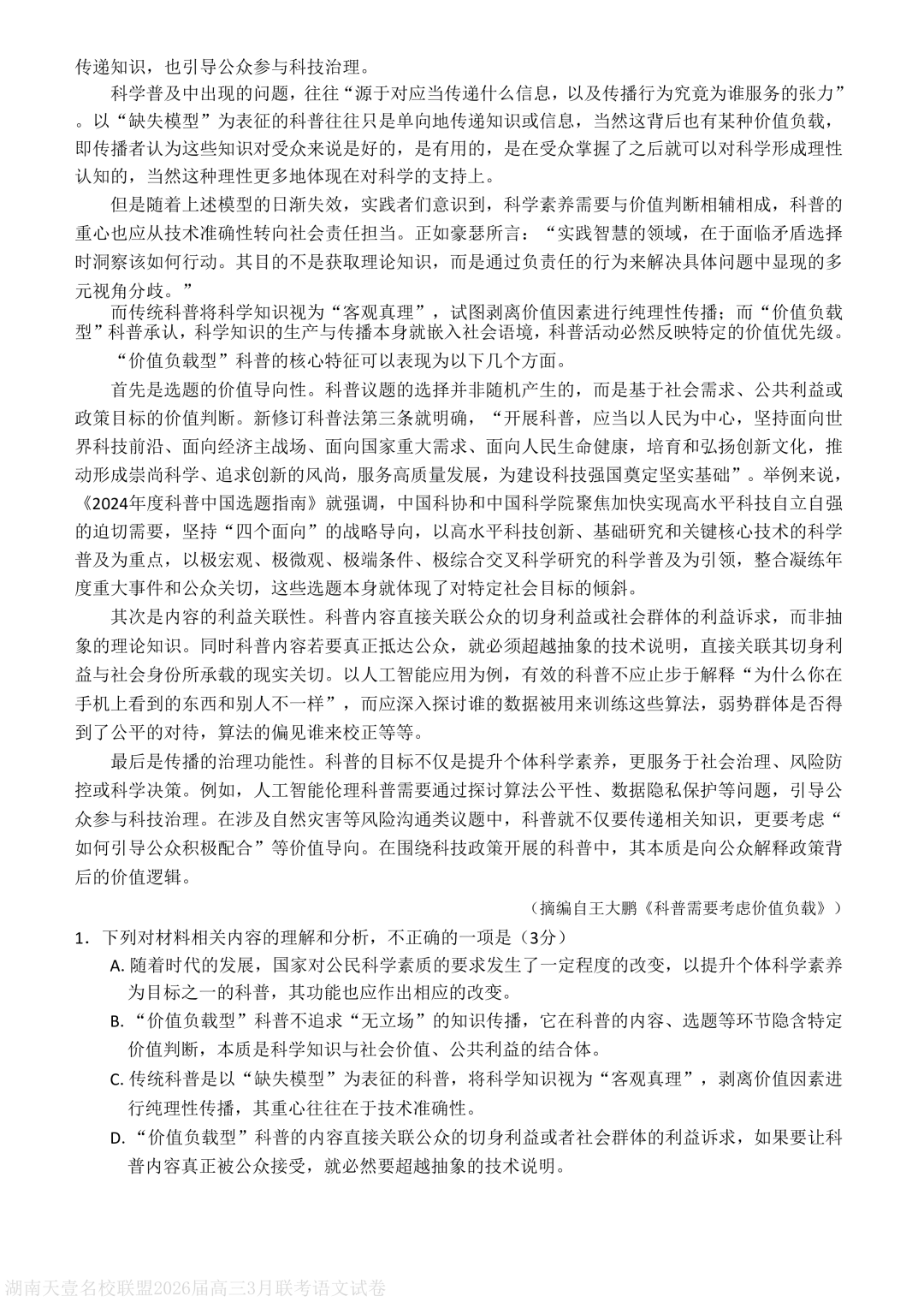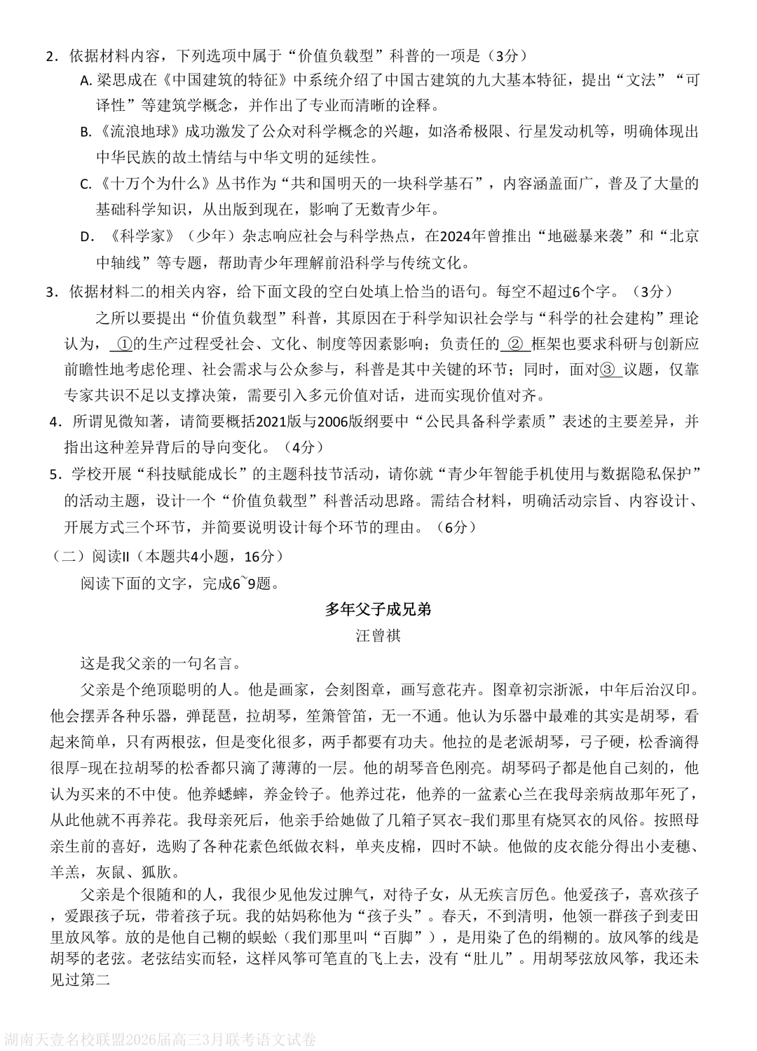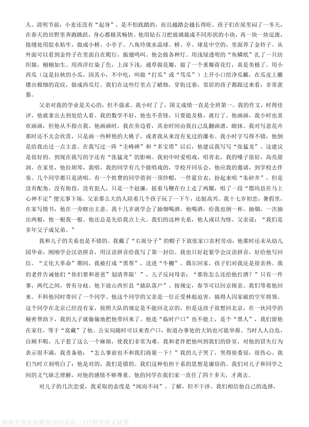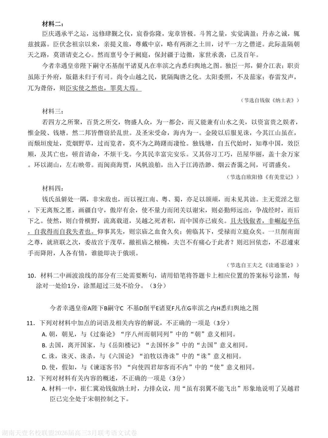 湖南省天壹名校联盟2026届高三下学期3月质量检测语文