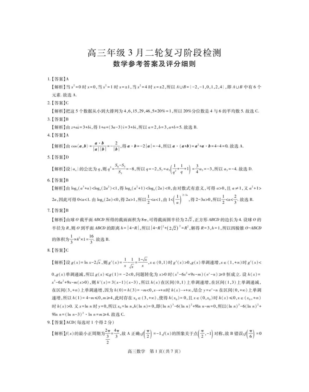 九师联盟2026届高三下学期3月30日联考数学试题 九师联盟2026届高三下学期3月30日联考数学试题