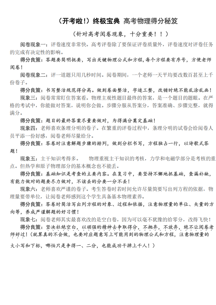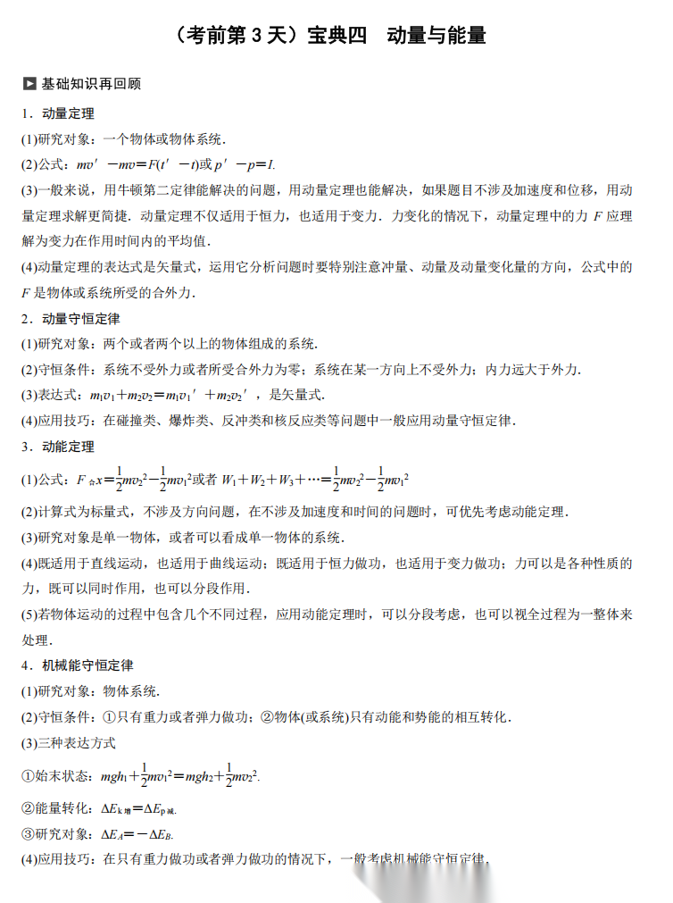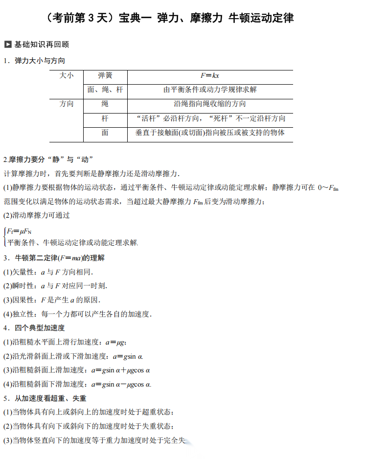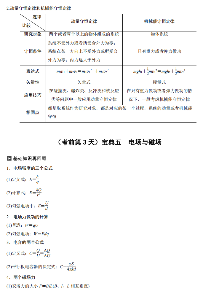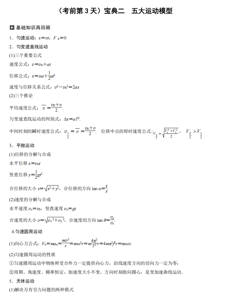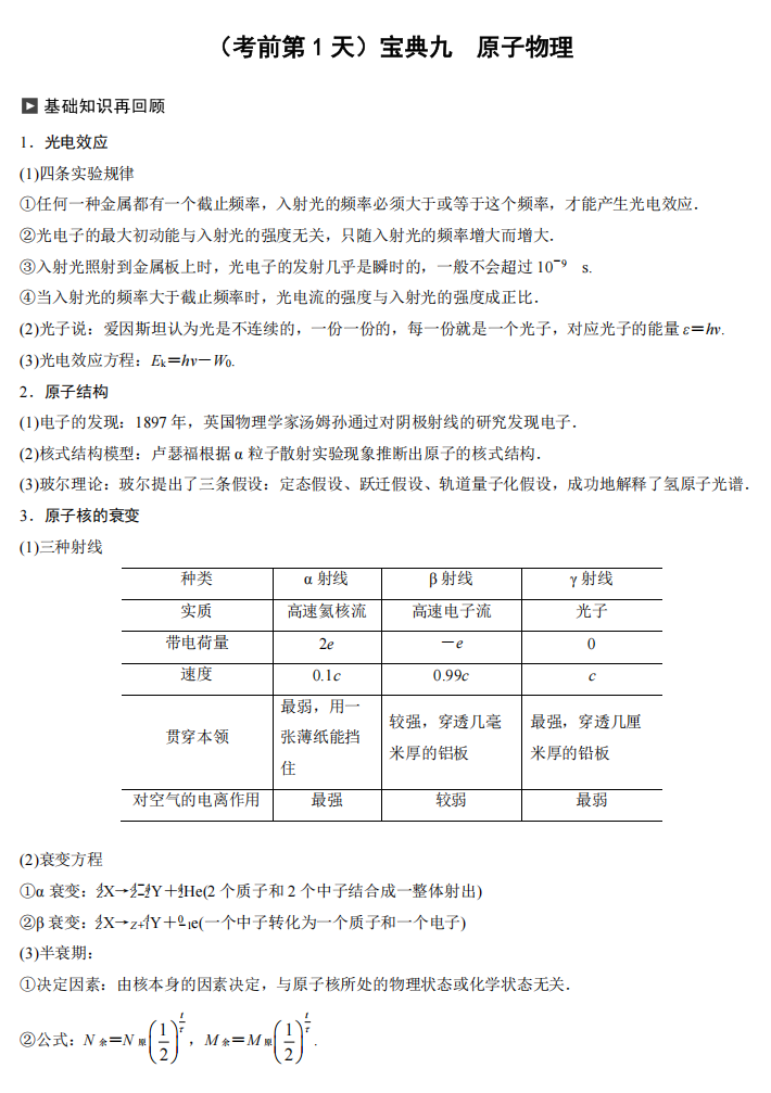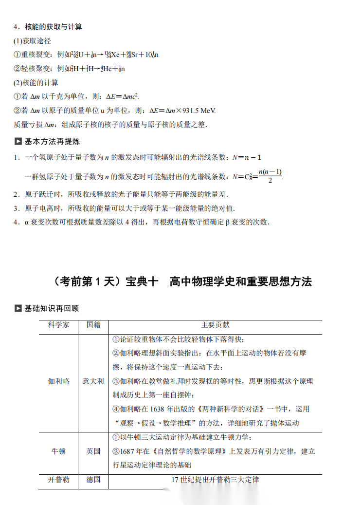 【高考物理】高考物理考前三天识记宝典---极致的考前三天精准提高册(纯净版)(28页完整版)