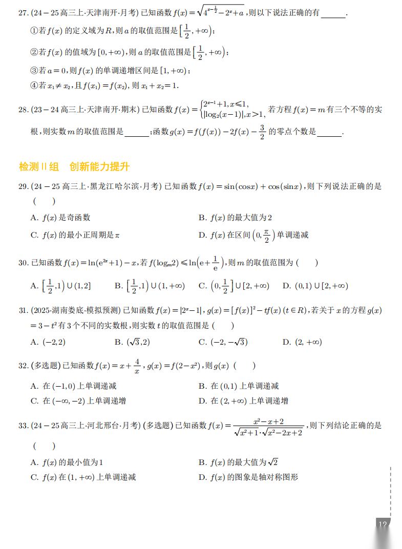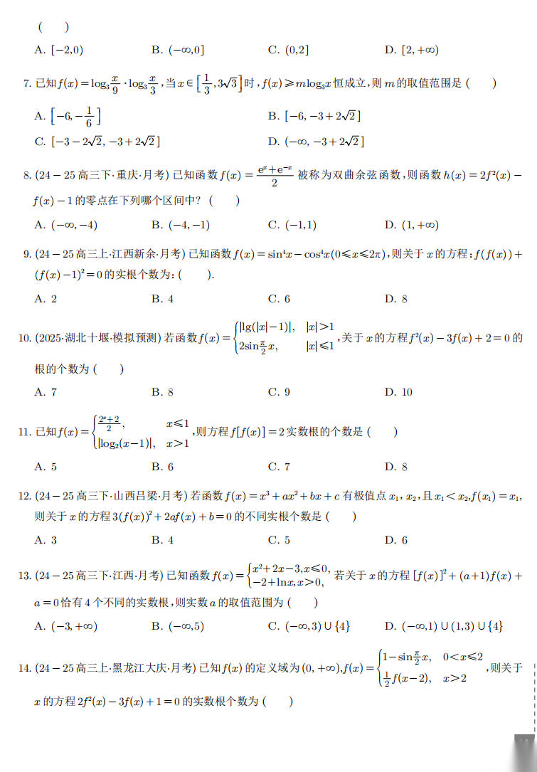 【高考数学】【重难点专练】高考数学考前冲刺重难点专训--- 复合函数及嵌套函数的应用专项训练 学生版+解析版 (纯净pdf版)(完整版)