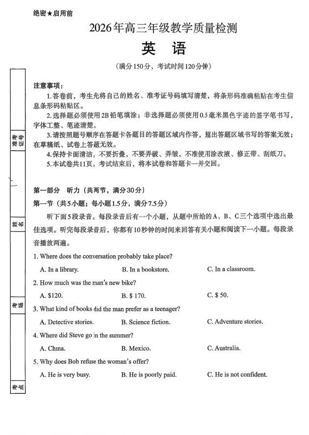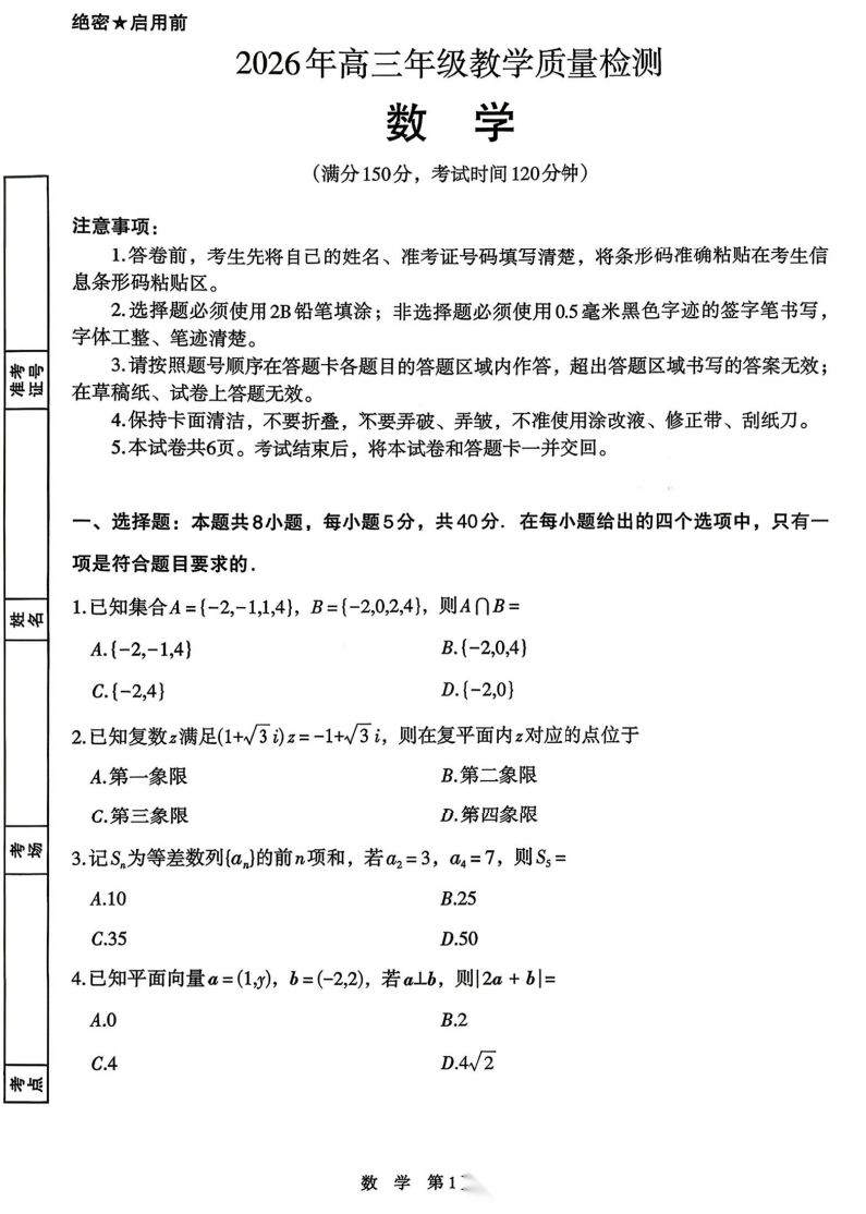 【西北卷】宁夏回族自治区银川市、石嘴山市、吴忠市三市2026年高三年级质量检测(银川石嘴山吴忠一模)(3.24-3.26) 全科试题卷+答案