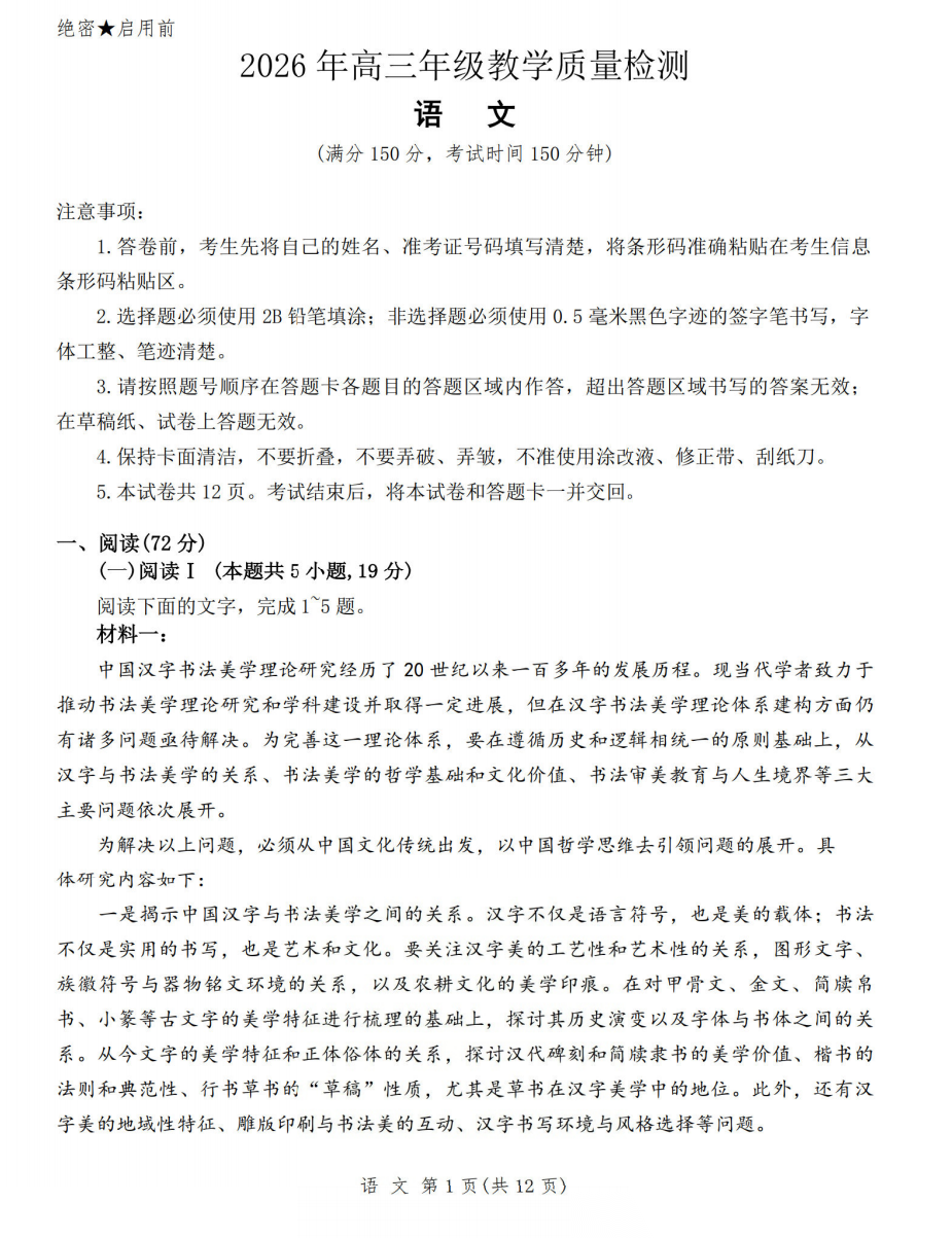 【重庆七龙珠】【重庆卷】重庆市育才中学校高2026届高三年级(下)学期3月月考(3.27-3.28) 全科试题卷+答案 【重庆七龙珠】【重庆卷】重庆市育才中学校高2026届高三年级(下)学期3月月考(3.27-3.28) 全科试...