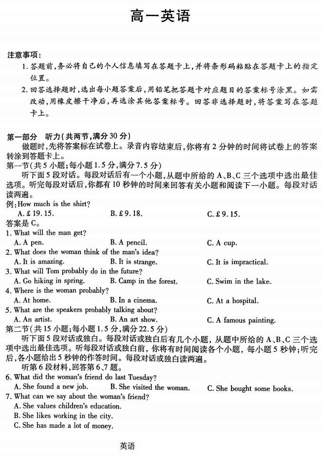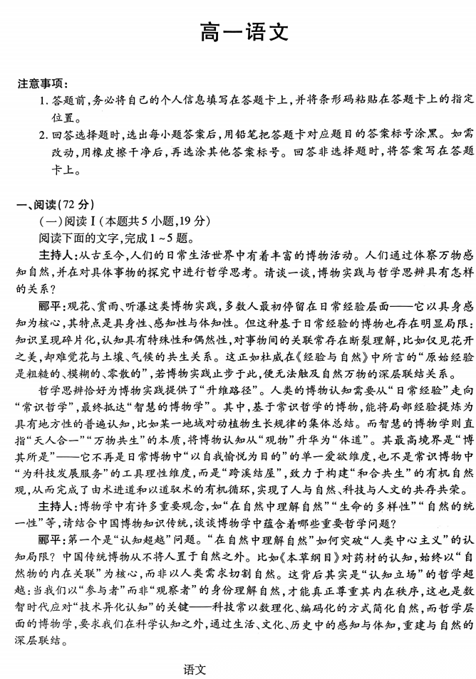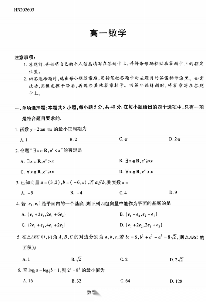 【河南卷】【高一】河南 T - Y 大联考2026年高一年级下学期3月大联考(3.23-3.24) 全科试题卷+答案