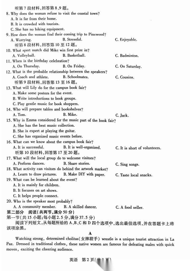 【云南卷】云南民族大学附属高级中学2026年届高三高考适应性训练(五)(3.24-3.25) 全科试题卷(缺物化生)+答案 【云南卷】云南民族大学附属高级中学2026年届高三高考适应性训练(五)(3.24-3.25) 全科试题卷(缺物...