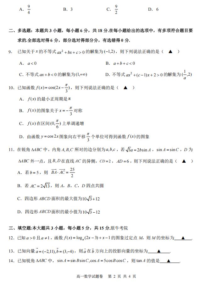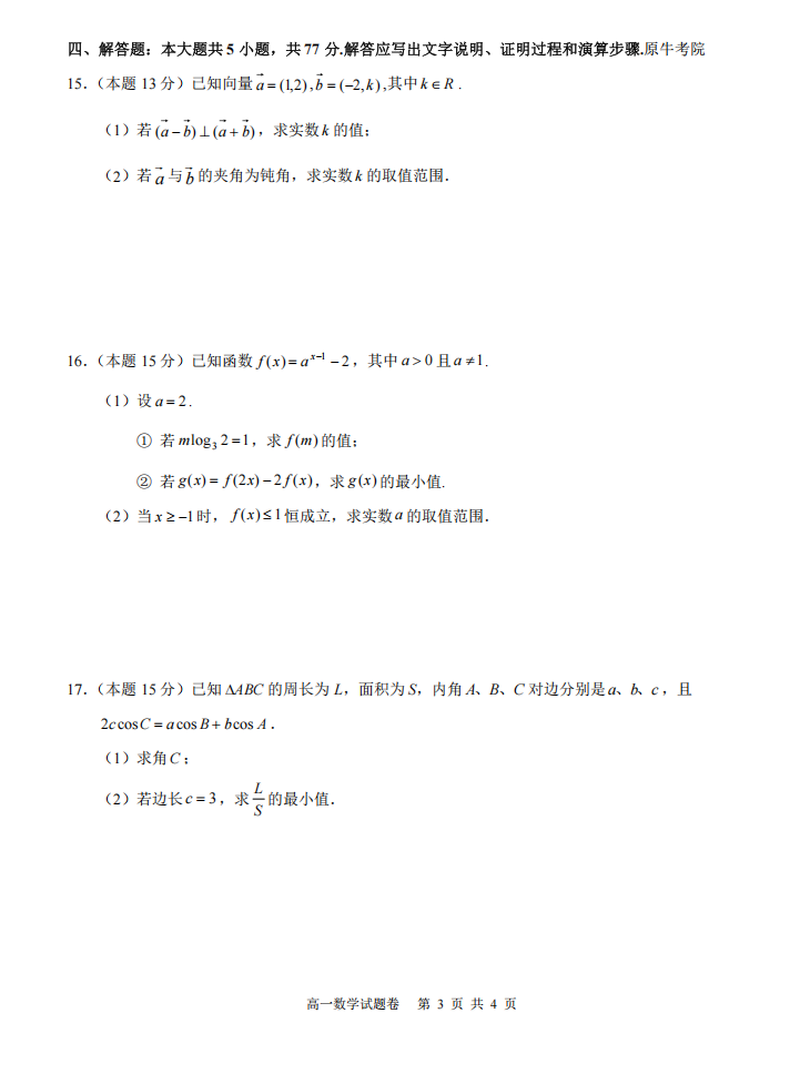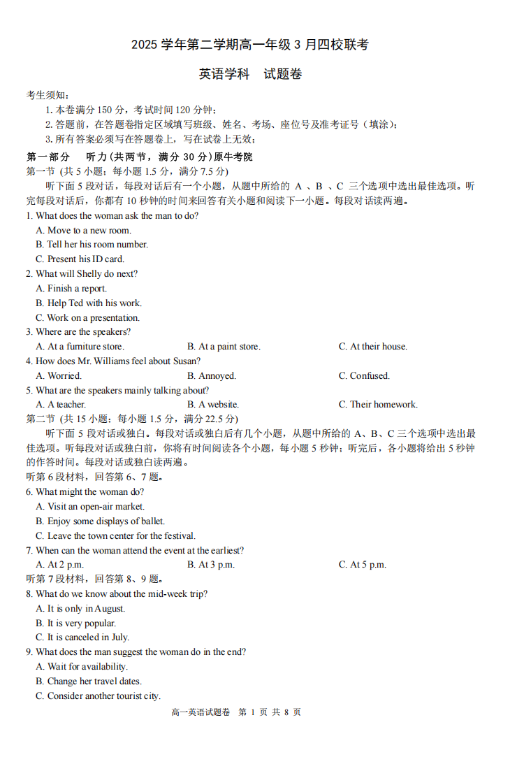 【河北卷】【高一】河北省邢台市金太阳多校2025-2026学年高一下学期3月测评(3.24-3.25) 全科试题卷+答案 【河北卷】【高一】河北省邢台市金太阳多校2025-2026学年高一下学期3月测评(3.24-3.25) 全科试题卷...