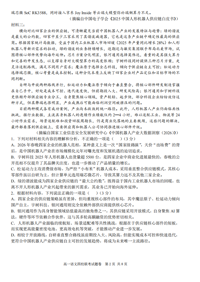 【河北卷】【高一】河北省金太阳(定兴第三中学)2025-2026学年高一下学期3月开学联考(26-288A)(3月中旬) 全科试题卷+答案 【河北卷】【高一】河北省金太阳(定兴第三中学)2025-2026学年高一下学期3月开学联考(26-288A)(3月中旬)...