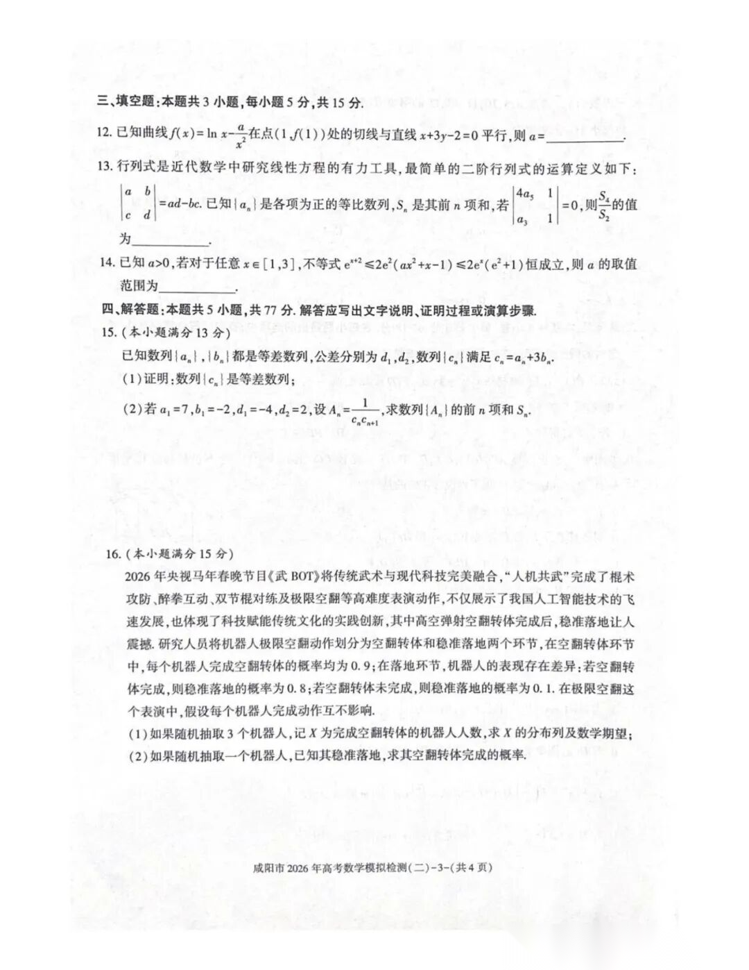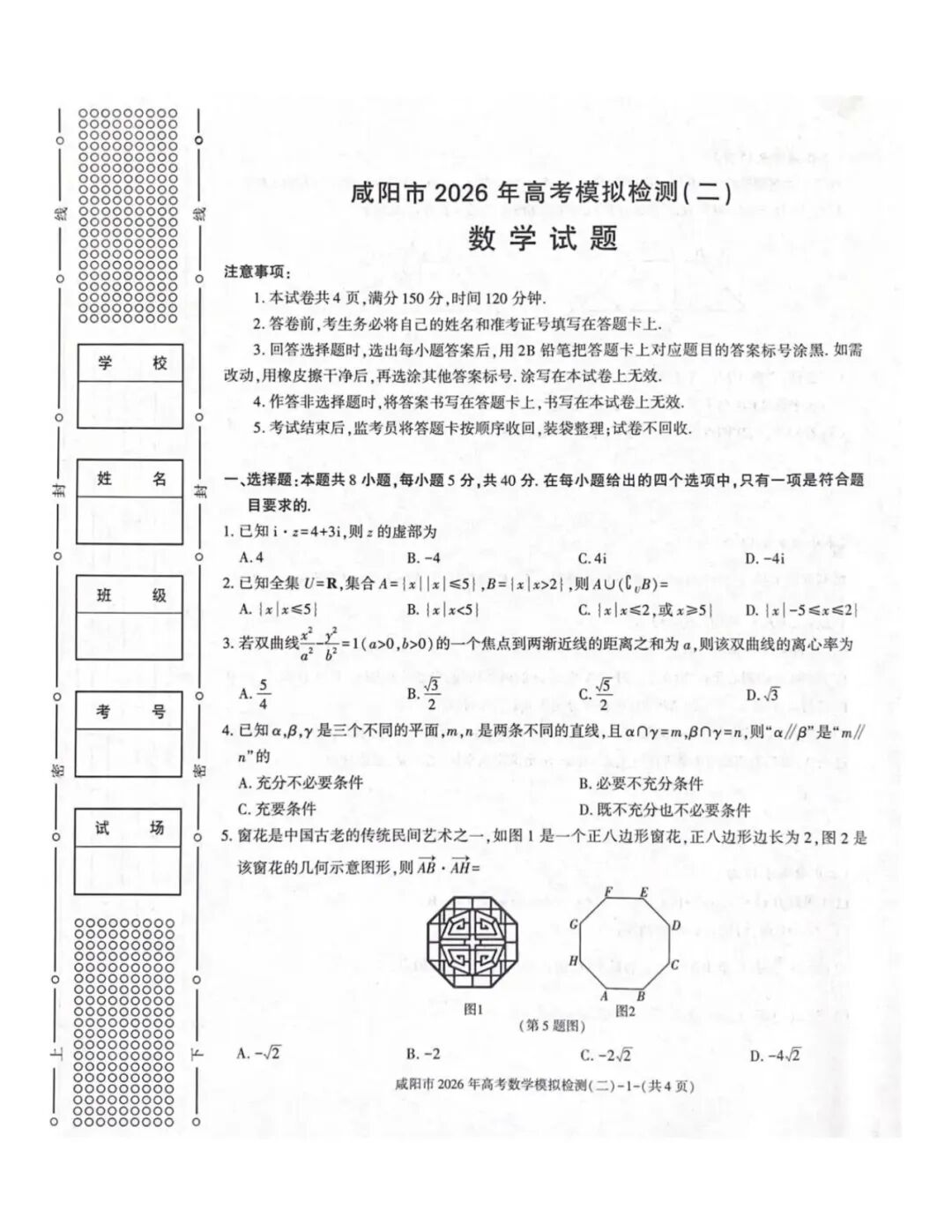 【全科】陕西省咸阳市2026年高考模拟检测(二)