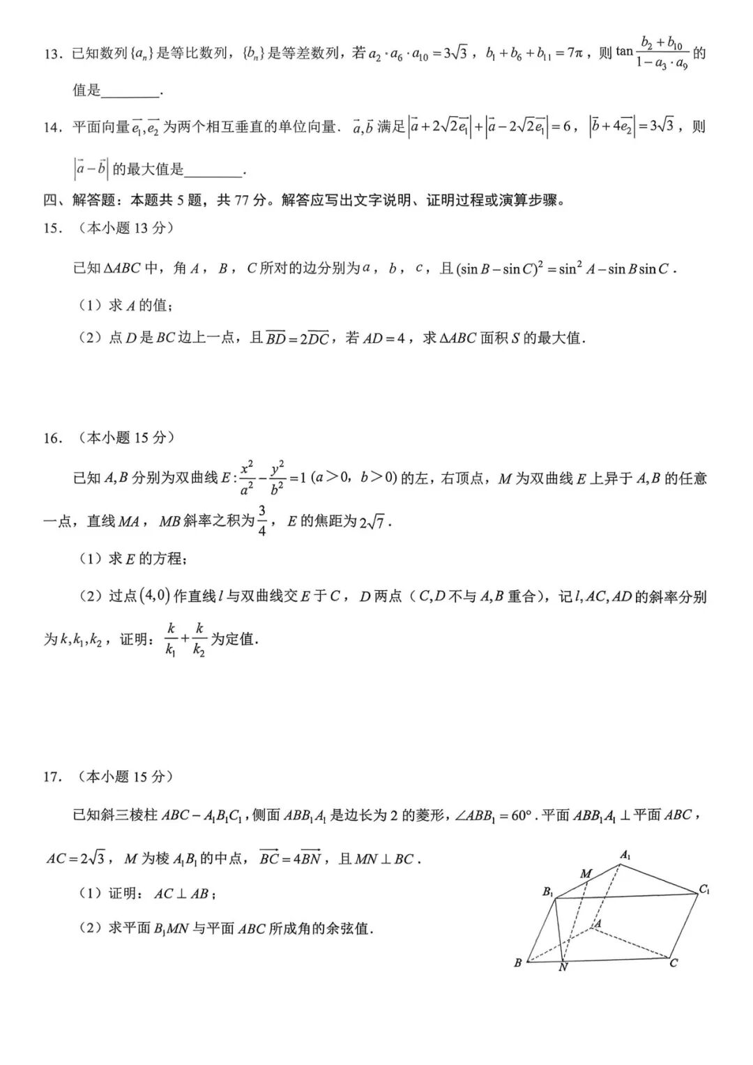【湖北卷】【高二】湖北省云学联盟2025-2026学年高二下学期3月学科素养测评(3.23-3.24) 理科全科试题卷+答案 【湖北卷】【高二】湖北省云学联盟2025-2026学年高二下学期3月学科素养测评(3.23-3.24) 理科全科...