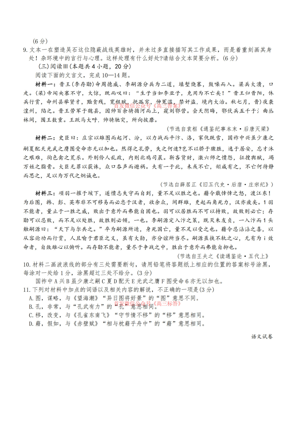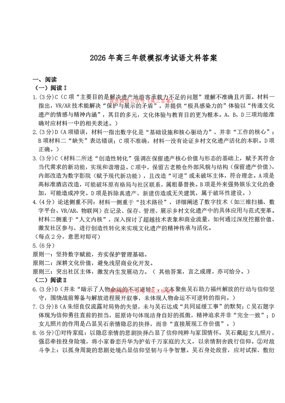【三省三校二模】2026年高三年级3月模拟考试语文、数学、政治答案 【三省三校二模】2026年高三年级3月模拟考试语文、数学、政治答案