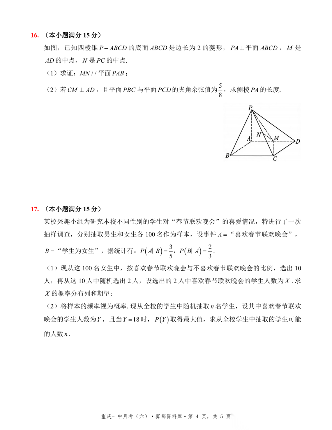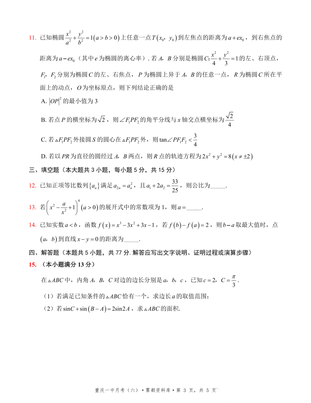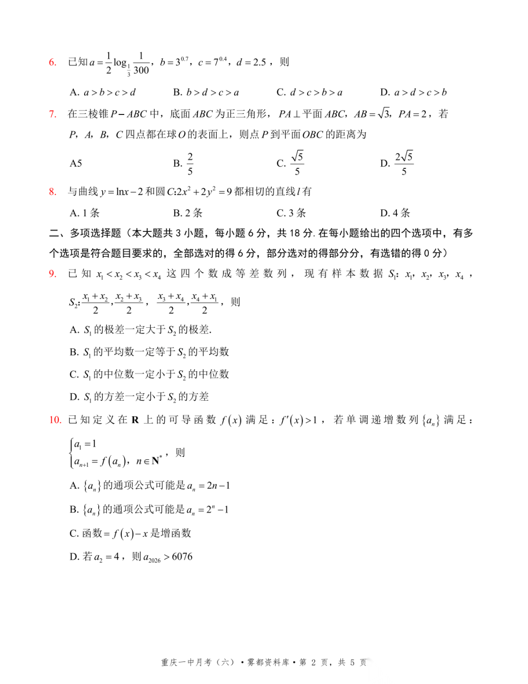 重庆南开中学2026届高三3月联考语文、物理、历史、数学 重庆南开中学2026届高三3月联考语文、物理、历史、数学